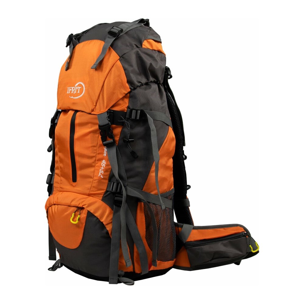 Туристический рюкзак Ifrit KEEPER нейлон, оранжевый, 45 + 5 л Р-999-50 оценят профессионалы пеших походов. Он обладает огромным объемом и способен вместить все необходимые туристу вещи: одежду, еду на несколько дней, палатку, спальный мешок и другие принадлежности, необходимые для выживания в условиях дикой природы. Рюкзак имеет регулируемые лямки, снабженные мягкими подкладками, а также пояс, с его помощью снижается нагрузка на спину, а потому ходить будет легче. На внешней стороне изделия есть вместительный карман, а сверху расположен съемный клапан, куда можно поместить предметы первой необходимости. Материал рюкзака – искусственная износостойкая ткань Poliester с влагозащитной пропиткой, благодаря которой ваши вещи всегда будут сухими. Внизу рюкзак подшит более прочной тканью, она абсолютно водонепроницаема и обладает повышенной устойчивостью к грубому механическому воздействию. С боков у изделия есть стяжки, с помощью которых можно регулировать объем рюкзака, также есть кармашки на резинках, в них помещаются бутылочки с питьевой водой.