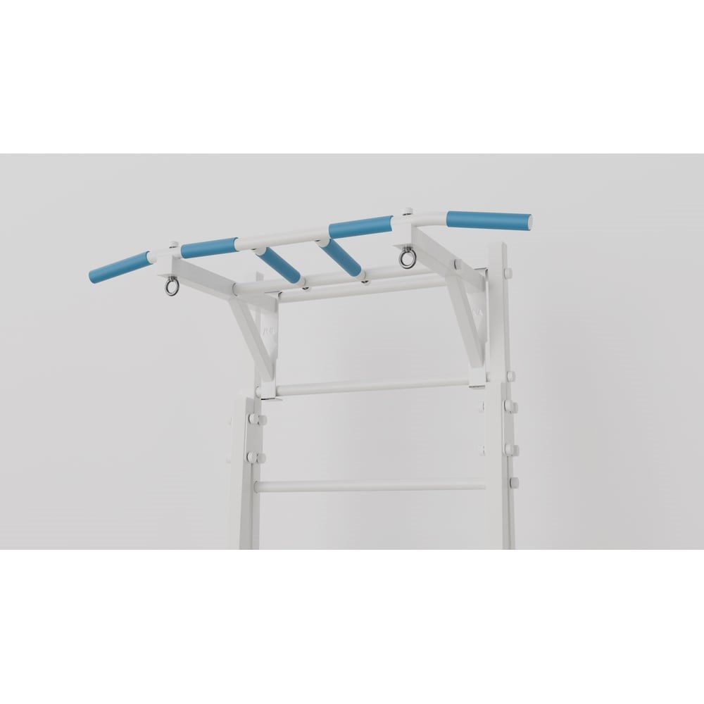 Турник на шведскую стенку BARFITS New Age три хвата, белый л00359 – лучший выбор для маленьких детей. Имеет 3 вида хватов (классический средний на ширине плеч, узкий параллельный и широкий хват). Обратите внимание, что специальные рукоятки есть на всех хватах. На нем можно комплексно тренировать мышцы спины и рук. Надежная стальная конструкция выдерживает до 250 кг. Вылет от стены 47 см – это идеальный вылет, так как в некоторых упражнениях требуется смещать корпус тела вперед, и при таком вылете вы не будете касаться ногами шведской стенки.