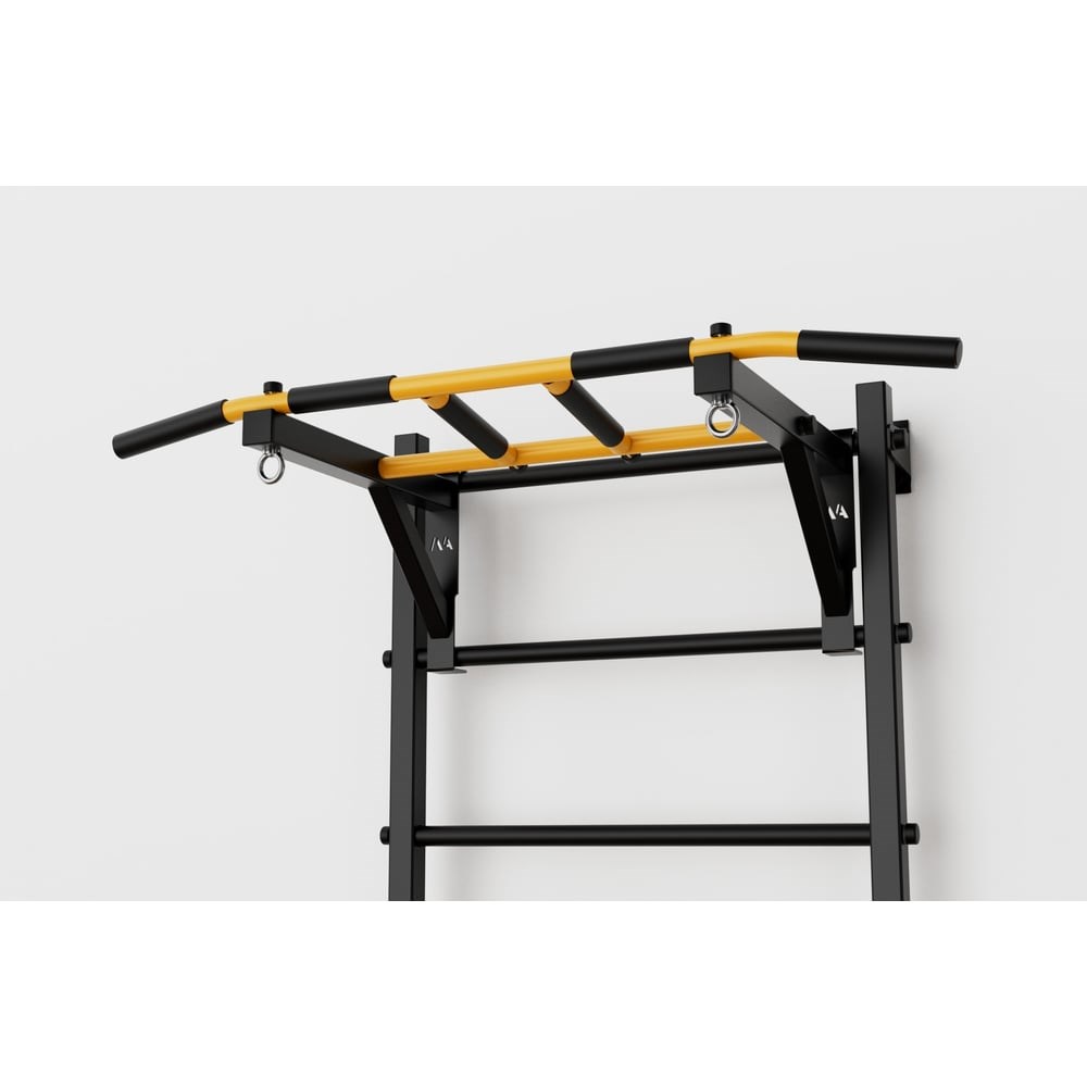 Турник на шведскую стенку BARFITS New Age три хвата, черный л00360 – лучший выбор для маленьких детей. Ребенку удобно и безопасно будет подтягиваться на ширине плеч, как раз в этом месте есть рукоятки для хвата. Вы с легкостью сможете установить комфортную и безопасную высоту под рост вашего ребенка, исключая риск падения с высокой высоты. Имеет 3 вида хватов (классический средний на ширине плеч, узкий параллельный и широкий хват). Обратите внимание, что специальные рукоятки есть на всех хватах. На нем можно комплексно тренировать мышцы спины и рук. Надежная стальная конструкция выдерживает до 250 кг. Вылет от стены 47 см – это идеальный вылет, так как в некоторых упражнениях требуется смещать корпус тела вперед.