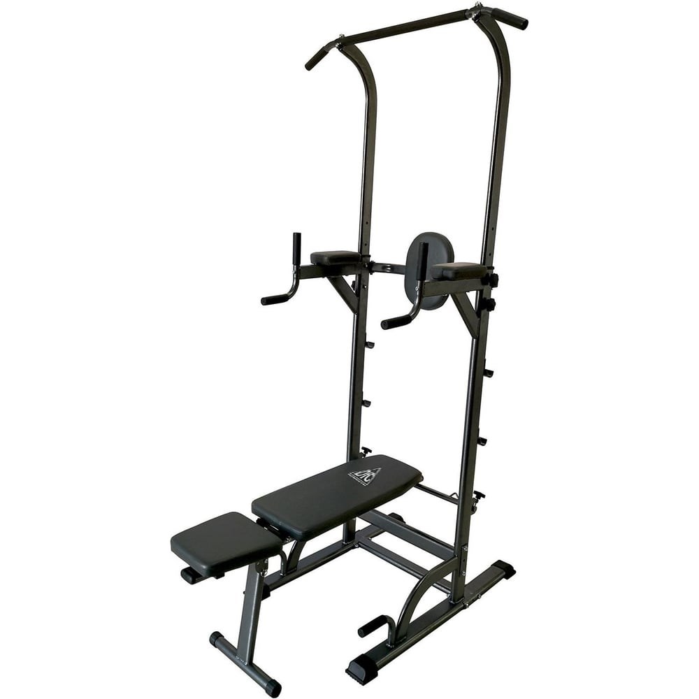 Турник-брусья со скамьей DFC Power Tower G004 предназначен для выполнения 3 типов упражнений: подтягивания на турнике, отжимания на брусьях от пола, и прокачки пресса, воздействуя на разные группы мышц тела на одном тренажере. Занятия на этом тренажере способствуют развитию мышц рук, плечевого пояса, спины и пресса. Он позволяет подтягиваться разным хватом, смещая нагрузку на желаемые участки мышц спины. Достаточная длина каждой рукояти позволит подобрать ширину комфортного хвата любому атлету, вне зависимости от его антропометрических данных. Вынесенные вперед на значительное расстояние брусья не стесняют спортсмена в выборе положения для выполнения отжиманий. Их удобно будет делать, как находясь лицом к тренажеру, так и спиной к нему. Спинка и специальные упоры для локтей дополнены двумя вертикальными рукоятками для максимального комфорта выполнения упражнений для пресса. А с помощью покрытых уретановыми пластинами подставок, вы легко сможете занять исходное положение в упоре на локтях, не рискуя получить травму. Турник регулируется по высоте от 180 до 230 см, промежуточная фиксация с помощью 4 болтов с ручками.