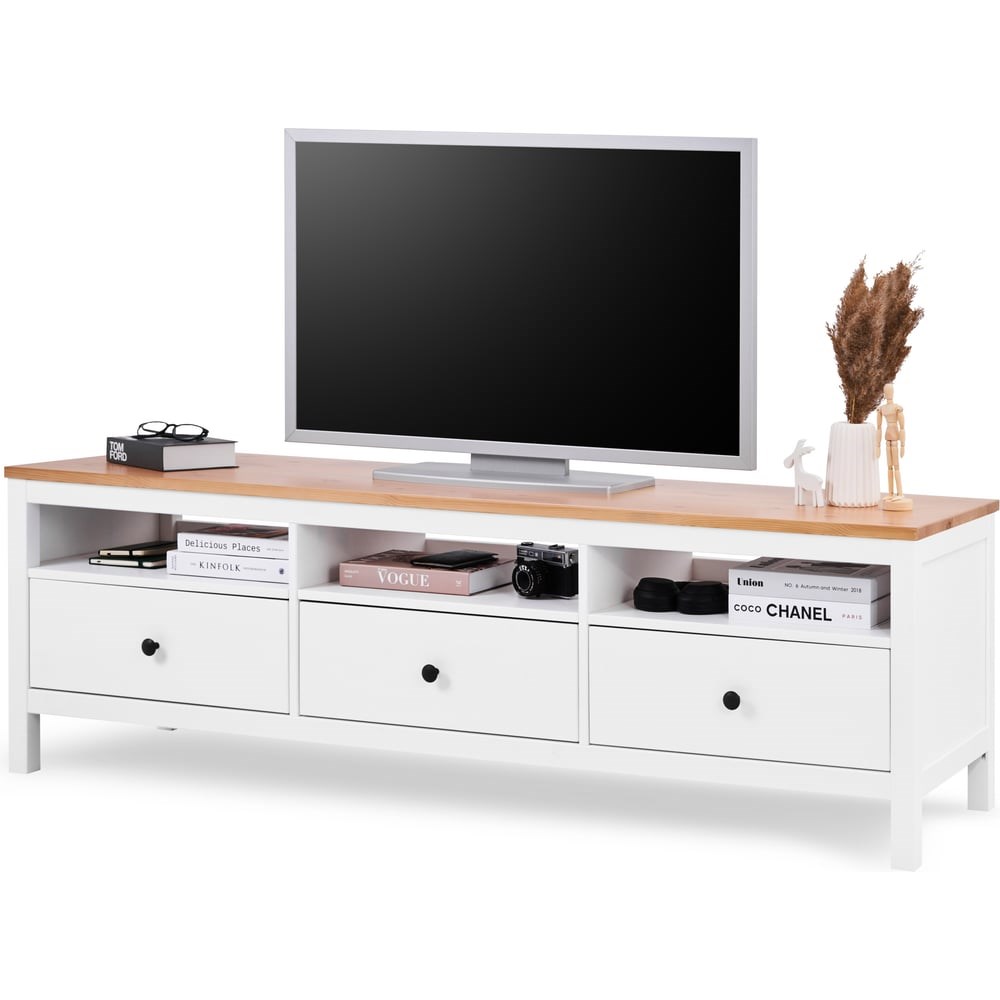ТВ-Тумба КЫМОР в скандинавском стиле станет прекрасным дополнением к вашему интерьеру. Выполнена из массива сосны, который ценится за свою прочность, долговечность и экологичность. Покрытие выполнено с использованием красителей на водной основе и лака на основе акриловых смол с УФ-отверждением. Имеет три ящика на роликовых направляющих, которые изнутри не покрашены, как основная часть, что придает им естественный вид. Эта тумба идеально подходит для размещения телевизора и другой мультимедийной техники, обеспечивая удобное хранение и организованность пространства.