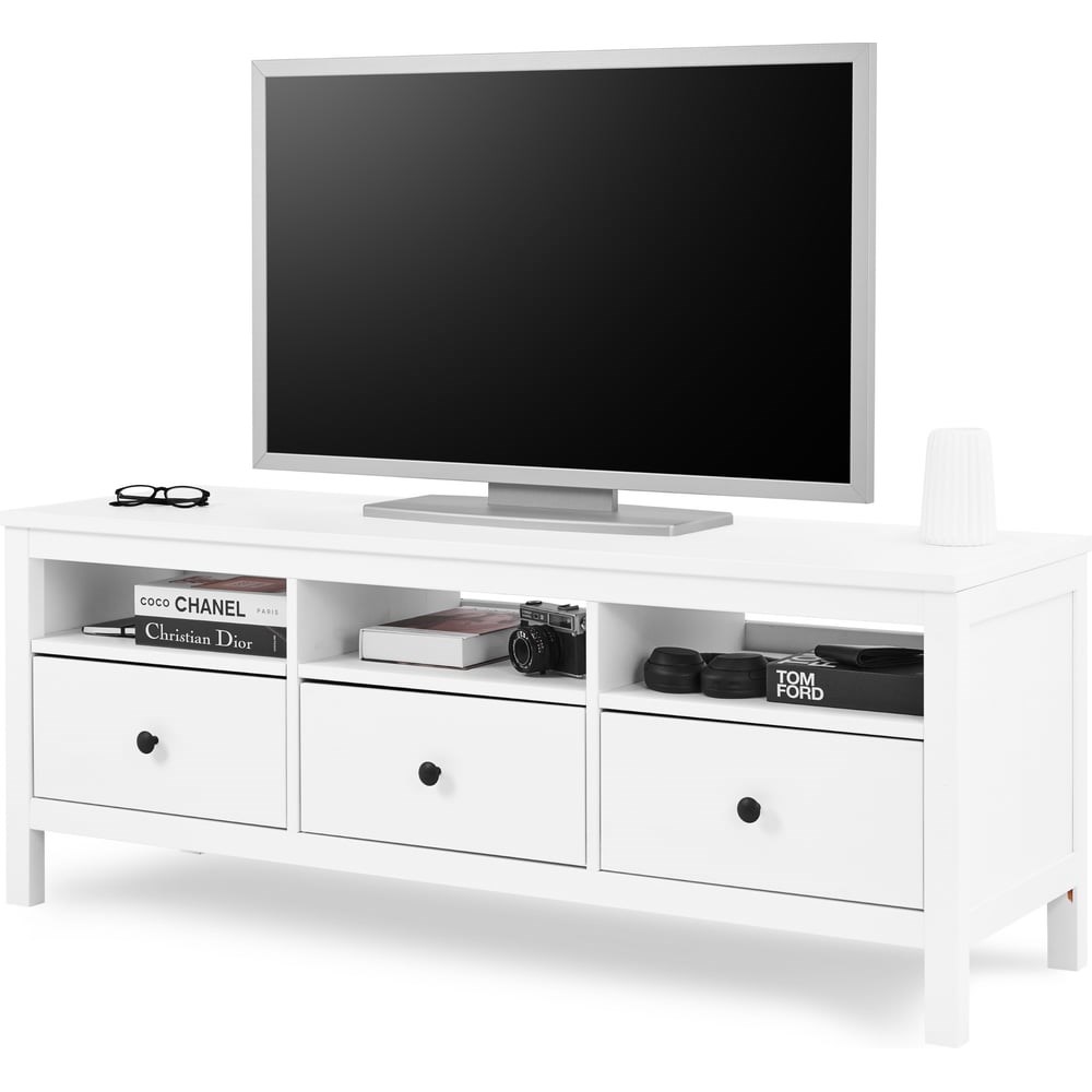 ТВ-Тумба КЫМОР в скандинавском стиле станет прекрасным дополнением к вашему интерьеру. Выполнена из массива сосны, который ценится за свою прочность, долговечность и экологичность. Покрытие выполнено с использованием красителей на водной основе и лака на основе акриловых смол с УФ-отверждением. Имеет три ящика на роликовых направляющих, которые изнутри не покрашены, как основная часть, что придает им естественный вид. Эта тумба идеально подходит для размещения телевизора и другой мультимедийной техники, обеспечивая удобное хранение и организованность пространства.