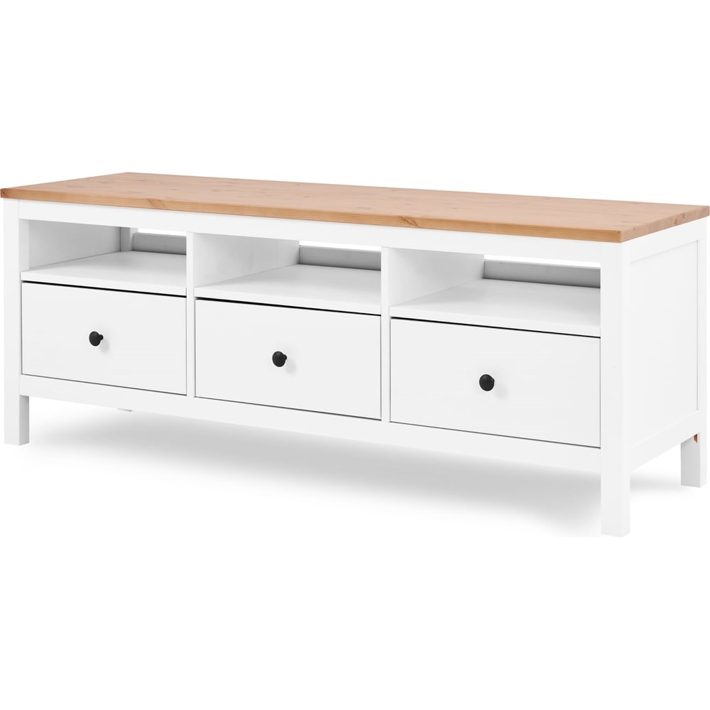 ТВ-Тумба КЫМОР в скандинавском стиле станет прекрасным дополнением к вашему интерьеру. Выполнена из массива сосны, который ценится за свою прочность, долговечность и экологичность. Покрытие выполнено с использованием красителей на водной основе и лака на основе акриловых смол с УФ-отверждением. Имеет три ящика на роликовых направляющих, которые изнутри не покрашены, как основная часть, что придает им естественный вид. Эта тумба идеально подходит для размещения телевизора и другой мультимедийной техники, обеспечивая удобное хранение и организованность пространства.