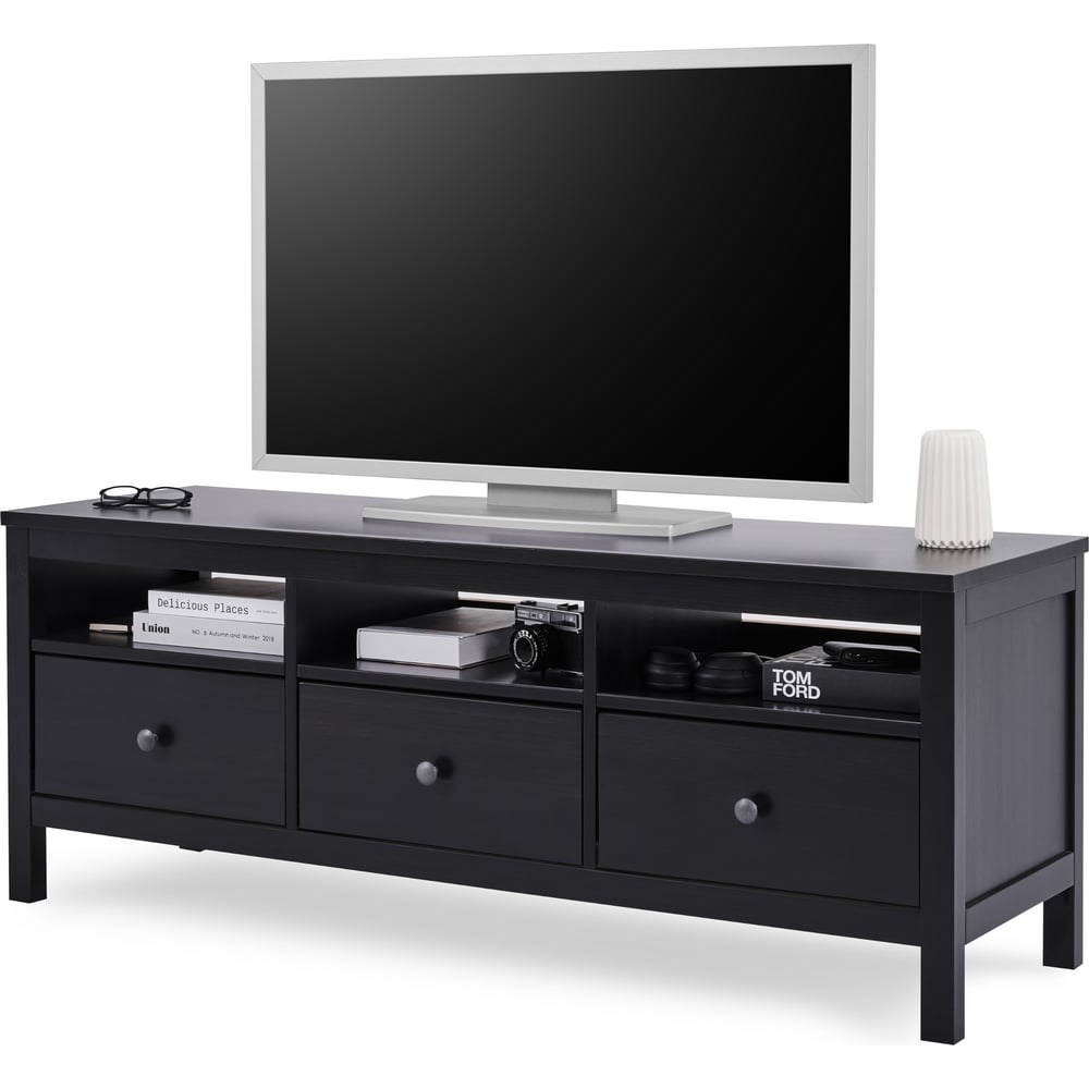 ТВ-Тумба КЫМОР в скандинавском стиле станет прекрасным дополнением к вашему интерьеру. Выполнена из массива сосны, который ценится за свою прочность, долговечность и экологичность. Покрытие выполнено с использованием красителей на водной основе и лака на основе акриловых смол с УФ-отверждением. Имеет три ящика на роликовых направляющих, которые изнутри не покрашены, как основная часть, что придает им естественный вид. Эта тумба идеально подходит для размещения телевизора и другой мультимедийной техники, обеспечивая удобное хранение и организованность пространства.