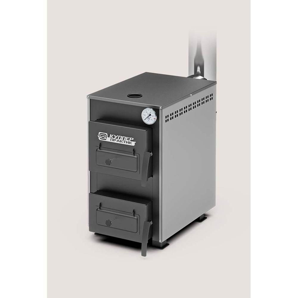 Твердотопливный котел Теплодар Куппер Практик - 8 (1.1) ОК.86.000.00 предназначен для отопления жилых домов и других помещений площадью от 40 до 80 м² при высоте потолка до 2,7 м. Длительность горения составляет целых 6 часов. Универсальность Котел универсален и может работать как в закрытых, так и в открытых системах отопления с принудительной циркуляцией теплоносителя. Кроме того, может использоваться как самостоятельный источник тепловой энергии в качестве дополнения к существующим системам отопления с газовыми, жидкотопливными или электрическими котлами. Все необходимое в комплекте В базовую комплектацию котла Куппер Практик входит: кочерга, шуровка, термометр, поворотный шибер. Небольшие габариты Котел занимает совсем немного места и может быть установлен непосредственно в жилом помещении.