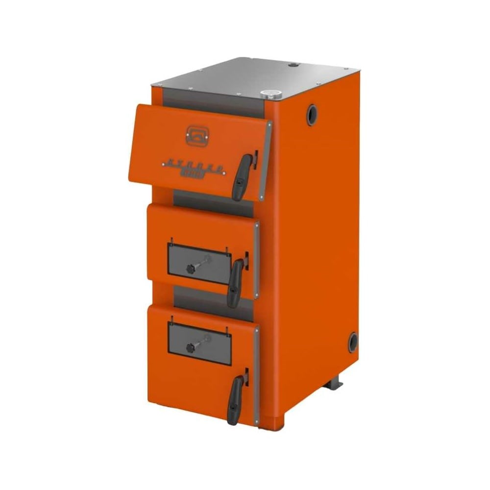 Твердотопливный котел Теплодар КУППЕР ПРО-22 (2.0)ОК.60.000.00 предназначен для работы на твёрдых видах топлива, таких как, дрова, уголь или топливные брикеты. Подходит для отопления помещений от 150 до 220 м² при высоте потолка до 2.7 м. Для поддержания температуры теплоносителя после прогорания основного топлива в котел может быть установлен блок ТЭН (приобретается дополнительно). Также в конструкции котла предусмотрена возможность установки пеллетной или газовой горелки: за 30 минут котел можно перенастроить на газ или пеллеты. 12 часов горения Время горения на одной закладке угля - до 12 часов. Такая длительность достигнута благодаря системе подачи вторичного воздуха в камеру сгорания и водотрубной колосниковой решетке, которая снимает тепло даже с тлеющих углей. Рабочее давление 3 атм Котел работает на давлении системы отопления до 3 атм, а также имеет дополнительный запас прочности, поэтому не выйдет из строя от скачков давления в системе отопления. Расширенная комплектация В комплект поставки котла уже входят аксессуары для прочистки, шибер и капиллярный термометр. Элементы дымохода, регулятор тяги, блок ТЭН и пульт управления к нему не входят в комплект котла и при необходимости приобретаются отдельно. Конструкция котла «Куппер ПРО» предусматривает возможность их установки. Удобная загрузка топлива Благодаря широкой наклонной дверце загружать твердое топливо чрезвычайно удобно, а универсальный съемный лоток особой конструкции из нержавеющей стали защищает дверцу от перегрева и снижает риск случайного просыпания топлива. Новые эргономичные рукоятки из жаростойкого силикона на всех дверцах подарят дополнительный комфорт. Термометр на виду В комплект котла уже включен капиллярный термометр расположен на верхней части котла.