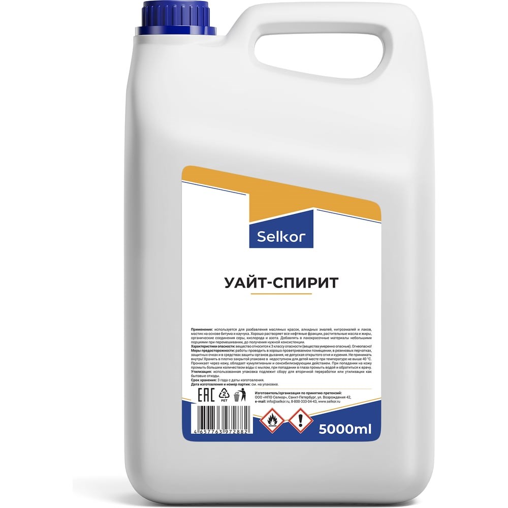Уайт-спирит Selkor 5 л 45824 используется для разбавления масляных красок, алкидных эмалей, нитроэмалей и лаков, мастик на основе битума и каучука. Хорошо растворяет все нефтяные фракции, растительные масла и жиры, органические соединения серы, кислорода и азота. Добавлять в лакокрасочные материалы небольшими порциями при перемешивании до получения нужной консистенции
