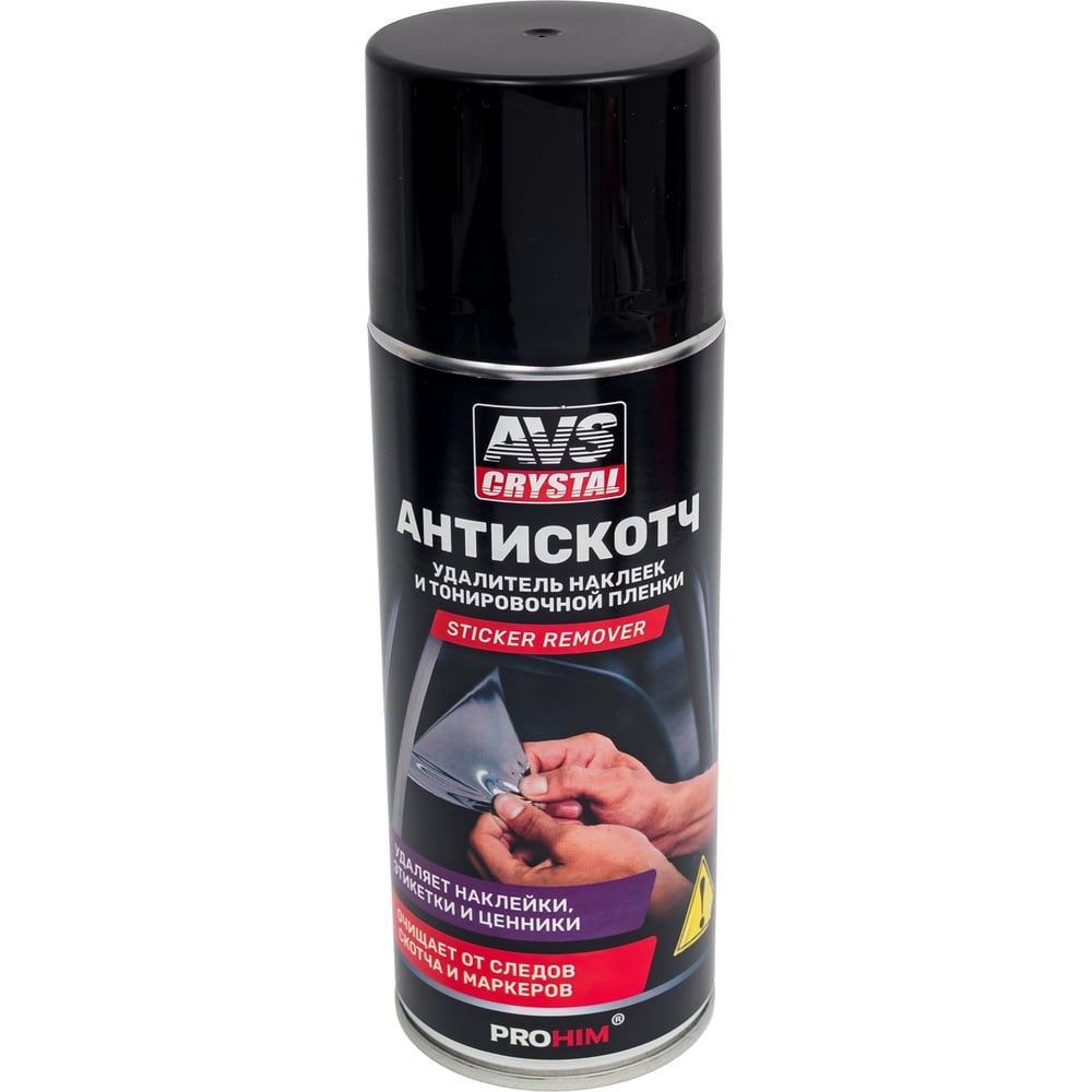Высокоэффективное средство предназначено для быстрого и безопасного удаления наклеек, тонировочной пленки, самоклеящихся этикеток, липких лент, остатков скотча, жевательной резинки, каучука, дёгтя. Устраняет следы от перманентных маркеров и фломастеров. Применяется на любых поверхностях: стеклянных, металлических, пластиковых, керамических, в том числе на окрашенных. Гелеобразный состав после распыления не стекает с вертикальных поверхностей. Проникает под поверхность наклейки и растворяет клей. Не вызывает коррозию. Подходит для наружных и внутренних работ, а также для использования в быту. Обладает приятным цитрусовым ароматом. Способ применения: Для удаления наклеек: В случае нанесения на лакокрасочное покрытие или пластик заранее проверить действие состава на малозаметном участке поверхности. Перед использованием энергично встряхнуть баллон. Нанести средство с расстояния 10-15 см на наклейку, стикер или следы клея. Удерживая баллон в вертикальном положении, дать составу подействовать в течение 1-2 мин. и не дожидаясь высыхания, аккуратно удалить наклейку. Остатки клея протереть сухой салфеткой. При необходимости повторить обработку. Для удаления тонировочной пленки: Во избежание попадания следов аэрозоля необходимо защитить поверхности, не подлежащие обработке. Не допускать длительный контакт с пластиковыми деталями автомобиля. Равномерно прогреть стекло, подлежащее растонированию. Аккуратно поддеть край пленки и медленно, без рывков, снять пленку со всей площади стекла. Дать стеклу остыть и равномерно распылить состав на стекло, дать подействовать в течение 30-40 секунд. Удалить средство с помощью резинового скребка или сухой салфетки. Для окончательной очистки стекла рекомендуется использовать очистители стекол «AVS CRYSTAL». ТУ 20.41.32-002-32415961-2018. Температура хранения от +5 до +25 градусов.