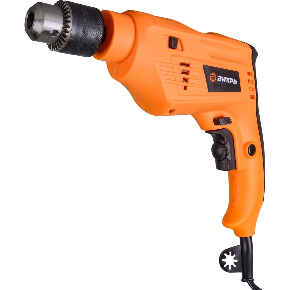 Дрель электрическая ударная Вихрь ДУ-700 станет надежным помощником для решения бытовых задач.Оснастка крепится в ключевом патроне диаметром 1,5-13 мм. Такая фиксация является надежной и исключает ослабление сверла во время вращения. Инструмент позволяет делать отверстия до 13 мм в стальных поверхностях, до 15 мм в бетоне, до 25 мм в дереве. Наличие ударного механизма облегчает работу с бетонными и каменными основаниями. Электродрель можно использовать в качестве шуруповерта, шлифовальной машины при условии соответствия оснастки ключевому патрону устройства. Возможность регулировки оборотов позволяет подбирать оптимальный режим для каждого конкретного случая. Режим реверса поможет легко выкрутить застрявшее сверло или крепеж. Кнопка выключения имеет фиксатор, что избавляет от необходимости постоянно держать ее нажатой. Дрель весит 1,8 кг, для удобства удержания она оснащена дополнительной ручкой в передней части корпуса.