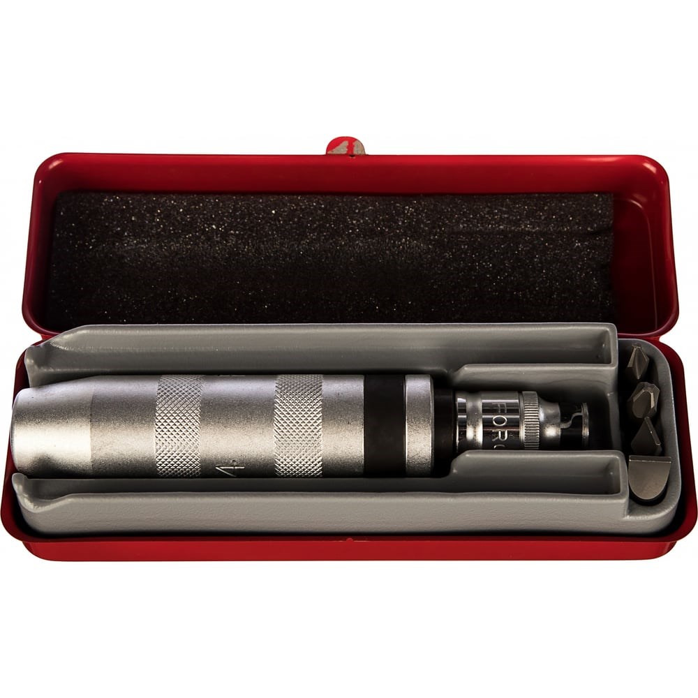 Ударная отвертка с наконечниками FORCE 6 предметов 5064 служит для откручивания сильно закрученных винтов при помощи ударов по обратной стороне отвертки. Комплект поставляется в компактном пластиковом кейсе. В наборе идет 4 биты с посадочным размером 5/16". Изделия комплекта изготовлены из прочной стали.