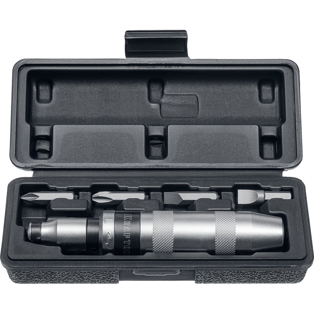 Ударно-поворотная отвертка KRAFTOOL ID-6 6 предметов 25555 представляет собой надежный инструмент. Реверс позволяет как откручивать, так и закручивать крепеж; Работа как с ударными битами с хвостовиком 5/16”, так и с ударными головками с присоединительным квадратом 1/2”.