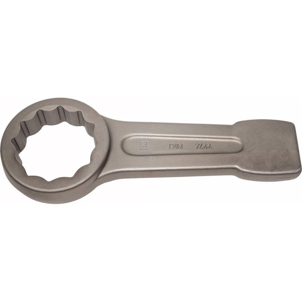 Накидной силовой ударный ключ 110 мм IZELTAS 0750050110 оснащается площадкой для удара - это необходимо, чтобы сдвинуть приржавевший крепеж. Инструмент выполнен из хромованадиевой стали, которая обладает высокой прочностью и устойчивостью к ударам.