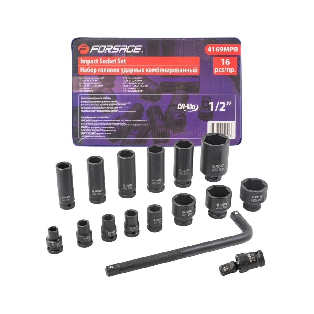 Набор торцевых 6-гранных ударных головок Forsage — это именно то, что вам нужно! Этот комплект идеально подходит для использования с ударным гайковертом, что делает его отличным выбором как для профессиональных мастеров, так и для автолюбителей.Высокая прочность и долговечность: Головки изготовлены из хроммолибденовой стали, известной своей стойкостью к износу и высоким нагрузкам. Они способны выдерживать даже самые экстремальные условия работы, гарантируя долгий срок службы.Эффективная работа с крепежами: Ударная конструкция головок обеспечивает усиленное воздействие на крепежные элементы, что позволяет легко справляться с заклинившими и заржавевшими болтами и гайками.Многофункциональность: В комплекте 14 головок различных размеров, включая как короткие, так и глубокие варианты. Это позволяет использовать набор для работы с крепежами разных типоразмеров в различных ситуациях.Работа в труднодоступных местах: Г-образный вороток и ударный кардан позволяют эффективно работать с крепежами, расположенными под неудобными углами или в труднодоступных местах. Эргономичная рукоятка воротка обеспечивает комфорт и контроль даже при длительной работе.Удобное хранение и транспортировка: Все инструменты аккуратно уложены в ложемент, что упрощает их хранение и позволяет всегда держать под рукой необходимый инструмент.Советы по применению:Правильное использование: Для достижения максимальной эффективности и предотвращения повреждений используйте головки только с соответствующими ударными инструментами.Выбор правильного размера: Всегда выбирайте головку подходящего размера для работы с конкретным крепежом, чтобы избежать повреждения как инструмента, так и крепежного элемента.Набор торцевых ударных головок Forsage 1/2" — это ваш надежный помощник для работы с крепежами любой сложности. Благодаря высокому качеству и функциональности, этот набор станет незаменимым инструментом как для профессионального использования, так и для личного автосервиса!