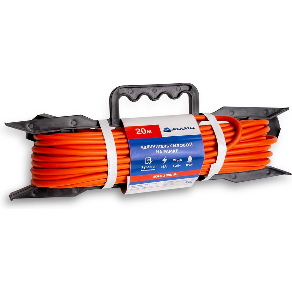Силовой удлинитель “Атлант” на рамке 30 метров без заземления станет верным помощником как садоводам для работы на даче, так и рабочим для строительных работ, обеспечивая удобство в работе. С его помощью Вы сможете расширить доступ к электропитанию и создать рабочую зону где угодно, попутно увеличивая и радиус действия электрооборудования.Особое внимание нужно обратить на наш специально разработанный ПВС-кабель, имеющий ряд преимуществ:Медные токопроводящие жилы. Медь имеет высокую электропроводимость, что позволяет ей эффективно и стабильно передавать электроэнергию;Устойчив к воздействию окружающей среды. Оболочка и изоляция из ПВХ-пластика делают его более стойким к влаге, некоторым агрессивным химическим веществам и механическим повреждениям;Яркий оранжевый цвет. Обеспечивает высокую видимость на любой поверхности, делая его легко заметным даже в условиях низкой освещенности или в траве.!!!Внимание!!Перед использованием размотайте кабель до конца!!!Размотанный кабель обеспечит равномерное распределение нагревания, исключая перегрев и замыкание.