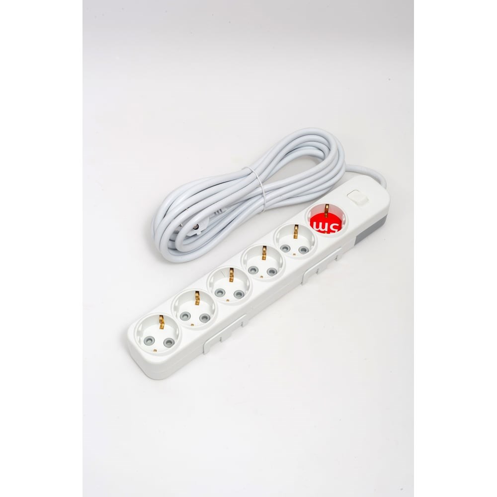 Удлинитель ELBI Myra с заземлением, 6 входов, с защитными шторками, с выключателем, 5м, 3x1 527-010205-612