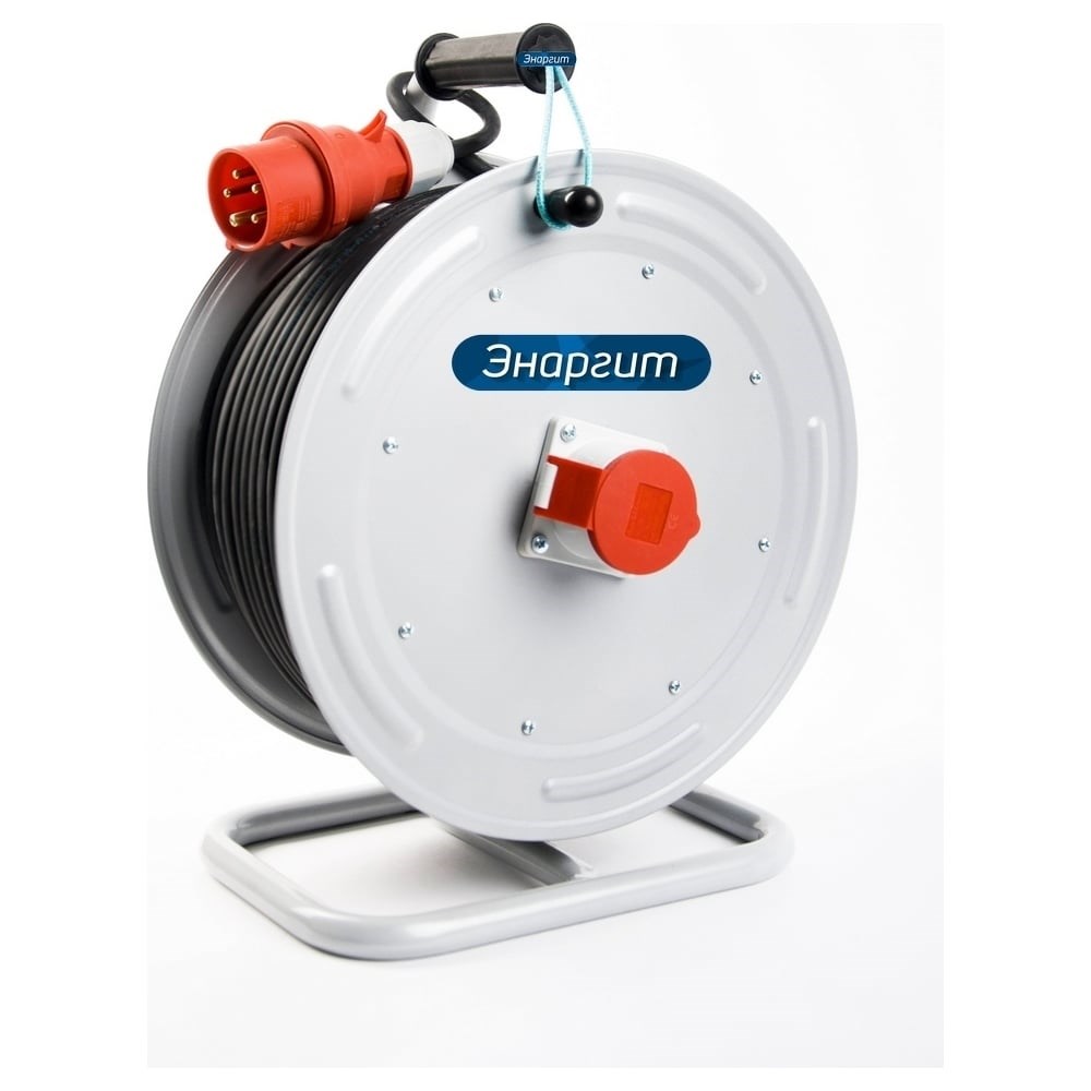 Удлинитель на катушке ЭНАРГИТ 380 Вольт МК5-525-50К-3801-44 имеет крепкий металлической корпус, который покрыт электроизоляционным (диэлектрическим) антикоррозийным порошковым покрытием. Промышленные силовые разъемы от ведущих мировых производителей гарантирующие безопасность и надежность. Силовые разъемы изготовлены из "полиамид 6" (термопласт). Он отличается высокой твердостью, прочностью, поэтому используется для производства деталей, испытывающих высокие ударные нагрузки. Прочность деталей из "полиамида 6" почти не уступает металлическим. Материал прекрасно переносит высокие температуры. Латунные контакты менее подвержены коррозии и уменьшают потери за счет лучшей проводимости. Кабель отличается стойкостью к многократным изгибам и воздействию отрицательных температур, изготовлен по стандарту ГОСТ. На фото представлен внешний вид корпуса, удлинитель поставляется в полном сборе с кабелем и вилкой.