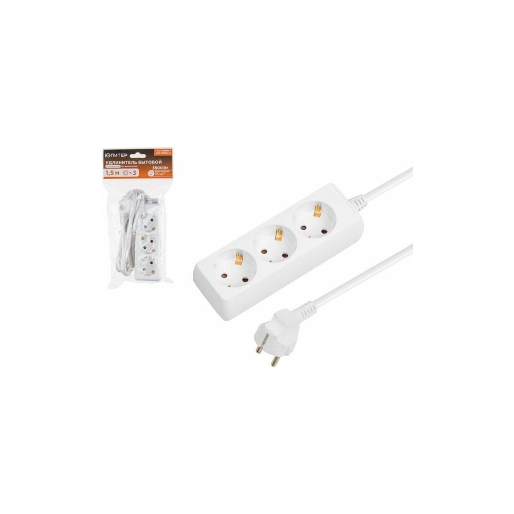 Удлинитель ЮПИТЕР 1,5 м 3 розетки 3,5 кВт с заземлением белый JP8105-21 предназначен для присоединения электро- и радиоустройств к электрической сети переменного тока напряжением 220В. Используется в быту, офисе или частном доме.