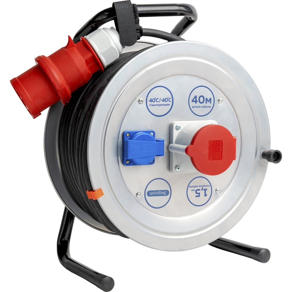 Удлинитель на металлической катушке ЭНАРГИТ МК1 кг 5х1,5 - 40 метров, МК1-515-40К-3801-2201-44 оснащен крепким металлическим корпусом, который покрыт электроизоляционным (диэлектрическим) антикоррозийным порошковым покрытием. Промышленные силовые разъемы от ведущих мировых производителей гарантирующие безопасность и надежность. Силовые разъемы изготовлены из "полиамида 6" (термопласта). Он отличается высокой твердостью и прочностью, поэтому используется для производства деталей, испытывающих высокие ударные нагрузки. Прочность деталей из "полиамида 6" почти не уступает металлическим. Материал прекрасно переносит высокие температуры. Латунные контакты менее подвержены коррозии и уменьшают потери за счет лучшей проводимости. Кабель отличается стойкостью к многократным изгибам и воздействию отрицательных температур, изготовлен по стандарту ГОСТ.