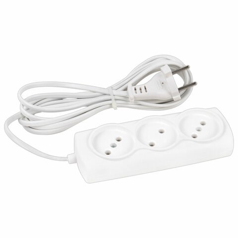 Удлинитель Р16-010, 3 розетки без заземления, 3 м, 2х0,75 мм, 1300 Вт, белый, 563