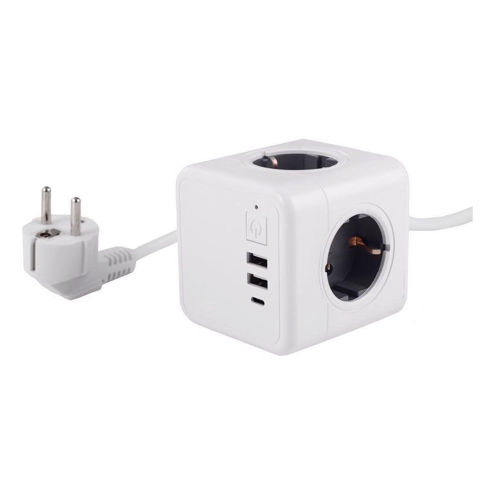 Удлинитель ROCKETSOCKET Cube Extended 4 Euro 16A, 3 USB 2A+C с блоком 5В/3.0А, кабель 1,5 м цвет серый GNS1405 поможет решить проблему создания дополнительных розеток в любом необходимом месте. Его можно устанавливать где угодно - на рабочем столе, под столешницей, на стене и в других труднодоступных местах. Тройной USB порт. Удлинитель RocketSocket Cube Extended оснащен тремя мощными портами USB (2.1A), что позволяет заряжать два устройства одновременно, в том числе планшетные компьютеры и смартфоны. Время зарядки будет меньше чем при использовании USB порта на вашем ноутбуке. Адаптеры не блокируют друг друга. Уникальный дизайн RocketSocket Cube Extended гарантирует отсутствие блокировки розеток. Размещение проводов. Для всех, кто предпочитает аккуратно размещать провода, RocketSocket Cube Extended включает в себя фиксатор кабеля, что помогает закрепить провод.