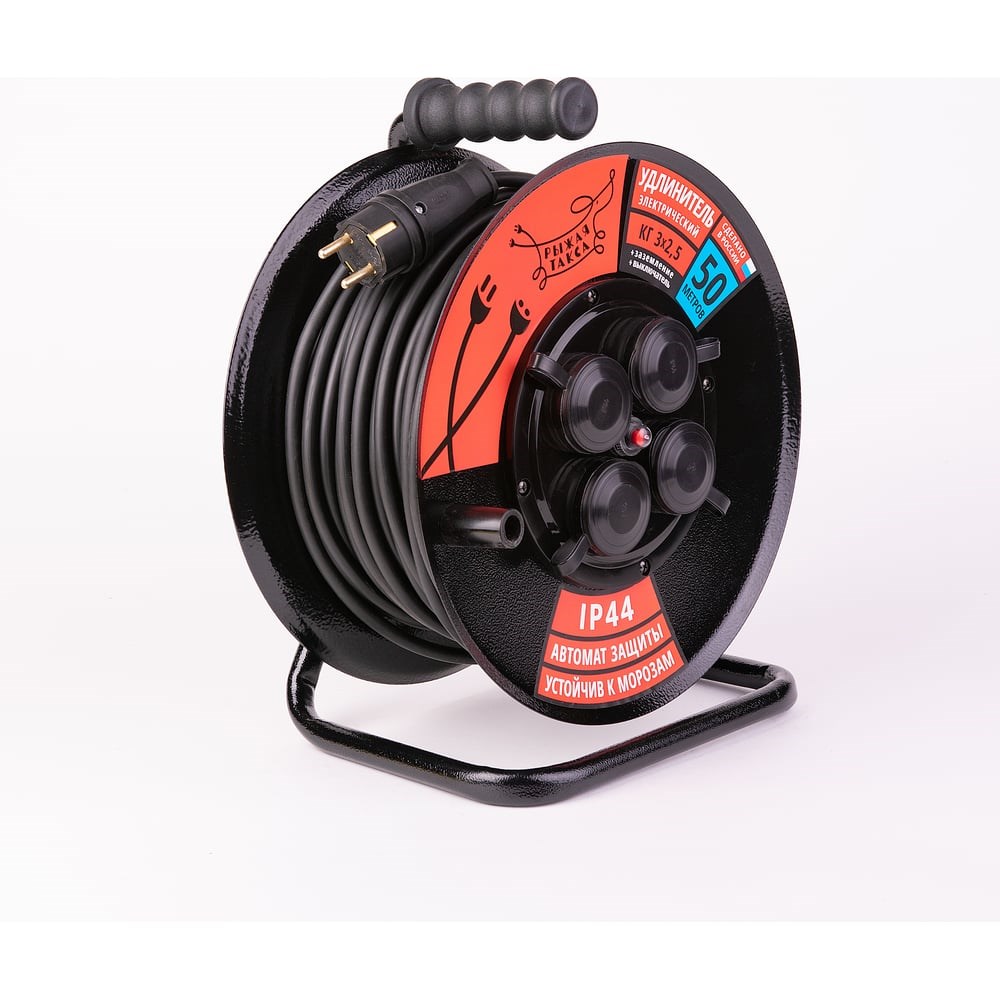 Удлинитель УКМ-44 (катушка металл) Рыжая такса с АВТОМАТОМ ЗАЩИТЫ КГ 3*2,5 (16А) 4гн. 50м IP44 с/з, УКМ4404-3452