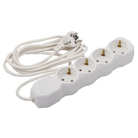 Удлинитель У10-004 4 розетки, с заземлением, 10 А, 3 м, белый, 6872