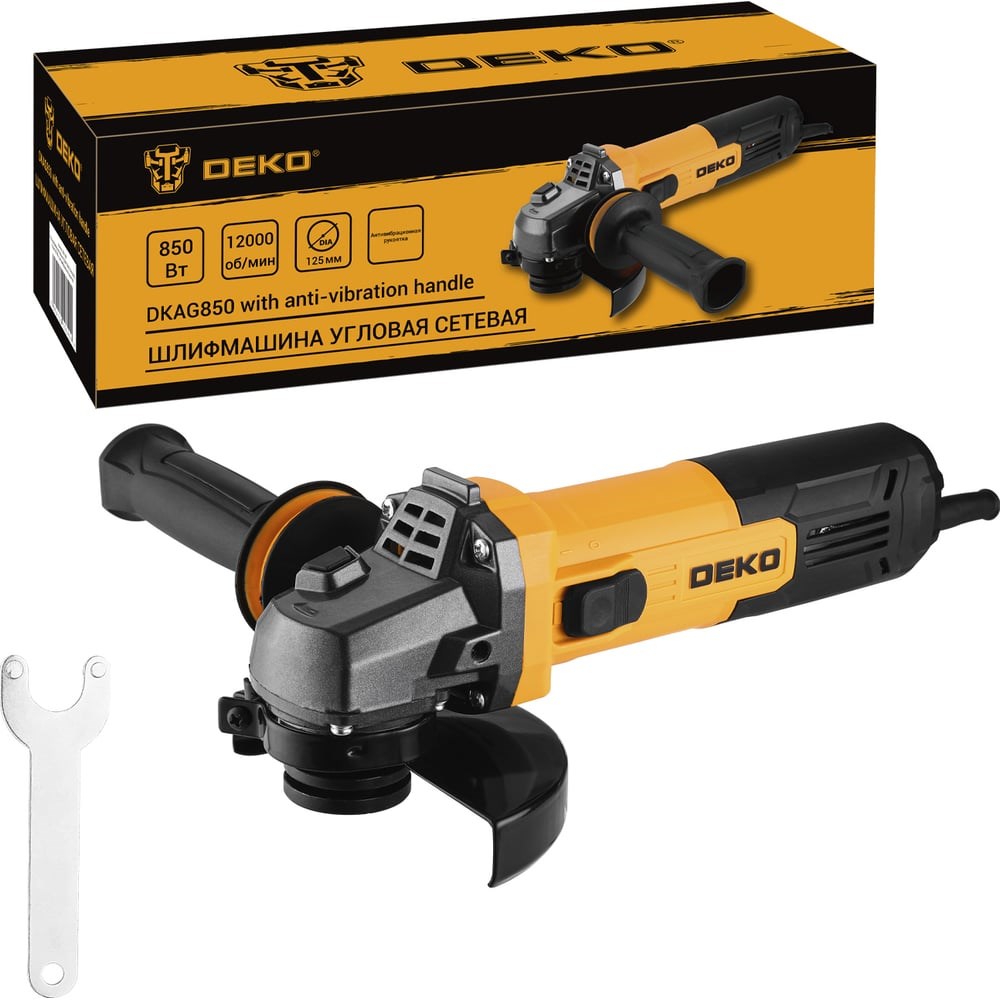 Углошлифовальная машина (УШМ) DEKO DKAG850 - универсальный инструмент для резки, шлифовки и черновой обработки металла и камня. С помощью определенных приспособлений углошлифовальную машину можно также использовать для чистки и шлифования. Диск закрыт специальным кожухом для защиты оператора от травм. Наличие дополнительной рукоятки обеспечивает лучший контроль и безопасность во время работы. Кнопка блокировки шпинделя позволяет быстро и безопасно менять рабочую оснастку. Характеристики: Напряжение: 220-240 В Мощность: 850 Вт Скорость без нагрузки: 12000 об/мин Диаметр диска: 125 мм Резьба шпинделя: М14