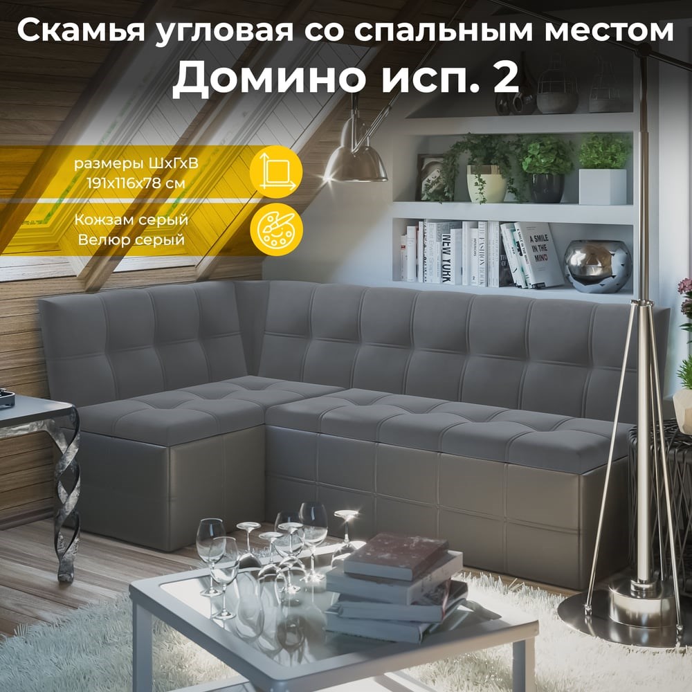 Скамья угловая со спальным местом "Домино" исполнение 2 представляет собой полноценное функциональное и удобное место для размещения большого количества человек за одним столом. Если Вы хотите, чтобы Ваша обеденная зона была уютной и практичной, то смело можете использовать для ее обустройства нашу новинку. Модель идеально подойдет к большинству современных интерьеров.Функциональность.Новинка является многофункциональным предметом мебели, ведь в обычном виде скамья угловая поможет удобно разместиться за обеденным столом, а механизм трансформации превращает его в полноценное спальное место для гостей, оставшихся ночевать. Для раскладывания необходимо выложить подушки, которые входят в комплект, на выдвигаемую часть скамьи. Модель позволит Вам отказаться от большого количества подвесных полок и дополнительных модулей за счет того, что в ней имеется вместительное место для хранения под сидением.Универсальность.Конфигурация угловой скамьи позволяет сделать сборку как на левую, так и на правую сторону, в зависимости от планировки помещения.