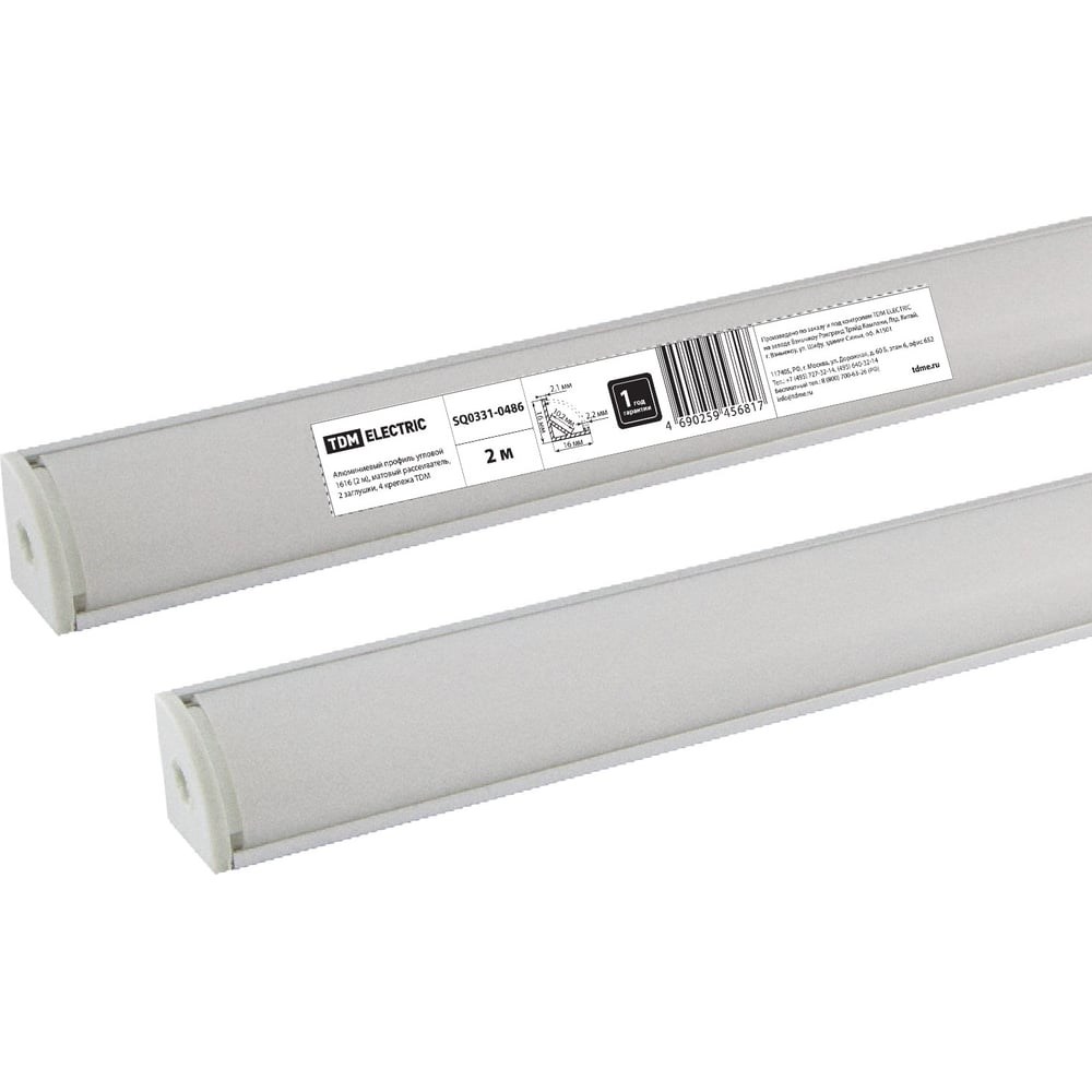 Угловой алюминиевый профиль TDM ELECTRIC 1616 2 метра, матовый рассеиватель, 2 заглушки, 4 крепежа SQ0331-0486