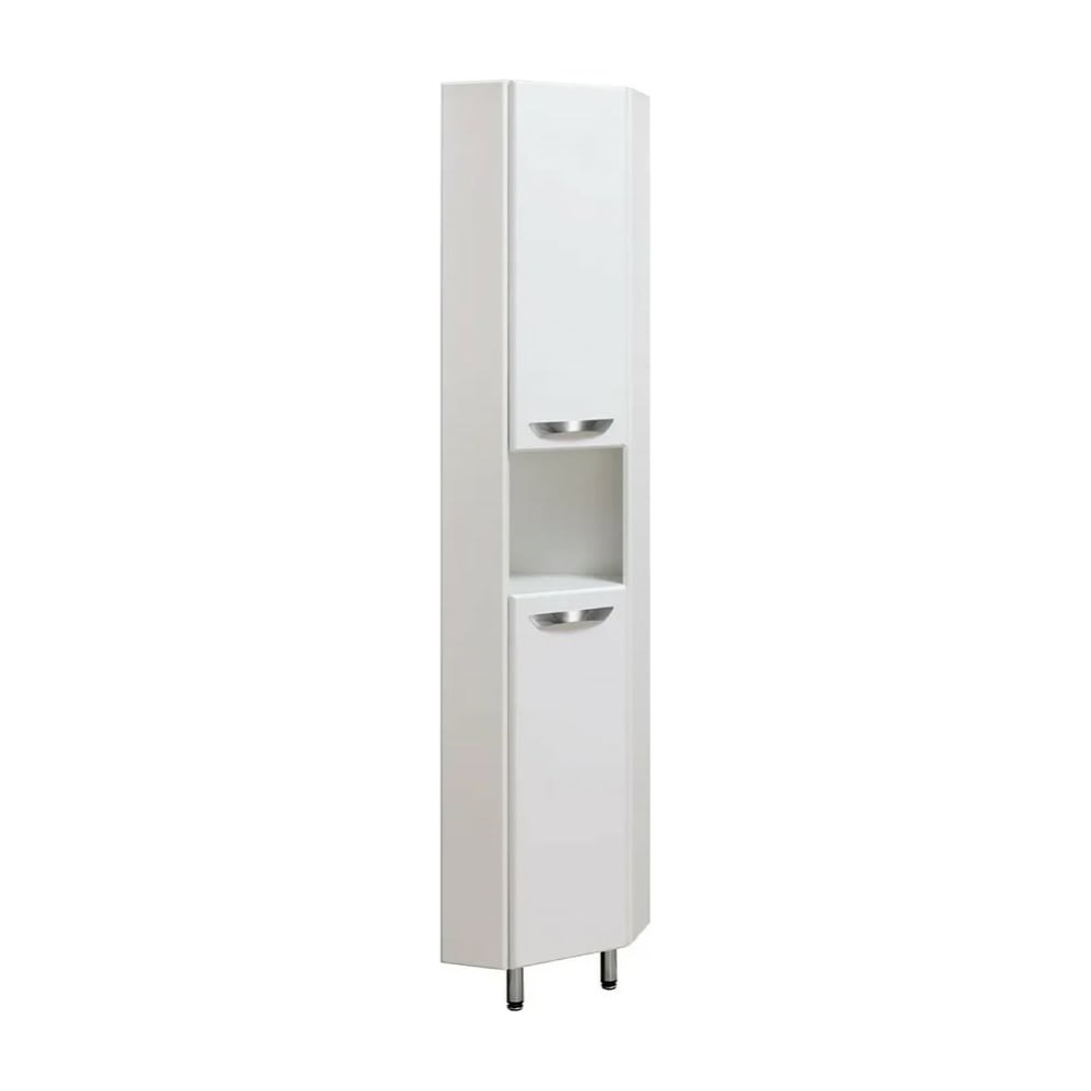 Пенал RUNO 30 угловой 00000000290 - функциональное решение для недорогого и современного оснащения ванной комнаты. Шкаф выполнен в белом цвете, идеально впишется в любой интерьер ванной комнаты. Изделие имеет две распашные дверцы, в нижнем и верхнем отделениях по одной встроенной полке и открытую нишу посередине. В комплекте идут петли со встроенным доводчиком, 2 ручки, 2 хромированные и 2 пластиковые ножки. Мебель для ванной RUNO - красота и практичность в мелочах!