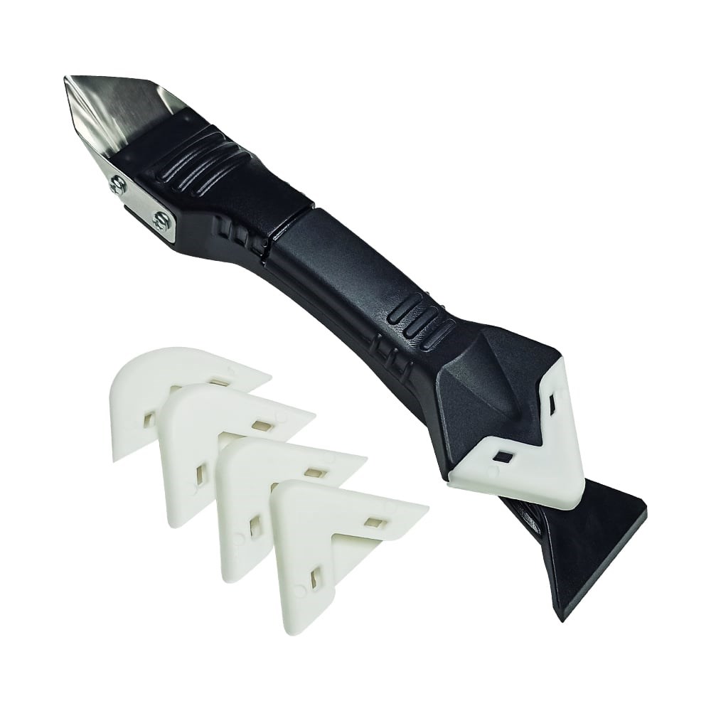 Угловой скребок для удаления и выравнивания швов герметика vertextools 0012-5 имеет 5 сменных насадок различных радиусов, предназначен для формирования гладких и аккуратных швов разных конфигураций, а также для удаления излишков герметика со швов и поверхностей. Данная модель - многофункциональный инструмент, на одном конце которого расположен выдвижной шпатель и широкая пластиковая лопатка, на втором конце - скребок. Пять профилей для правки к приспособлению для сглаживания стыков Не царапает поверхность на которую наносится герметик Износостойкий и устойчивый к растворителю Герметик не прилипает к поверхности шпателя
