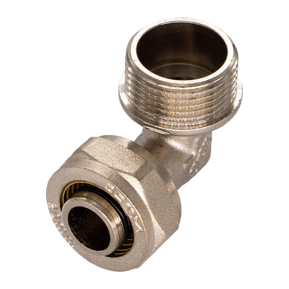 Уголок н/р 20х3/4 CTM - обжимной фитинг для соединения металлопластиковых (металлополимерных) труб. Изготовлен методом горячей штамповки из латуни с последующей термической обработкой и никелированием для предотвращения появления коррозии, механического износа и вредного воздействия агрессивных жидкостей и воздушно-газовых сред. Корпус, накидные гайки и обжимные кольца уголка изготовлены из латуни , уплотнительное кольцо из нетоксичной резины (EPDM), диэлектрическая прокладка из фторопласта Ф4. Накидные гайки – усиленные. Материал: латунь с никелированным покрытием Соединение: цанга/наружная резьба Давление: 16 бар Рабочая температура: от -20°С до +115°С
