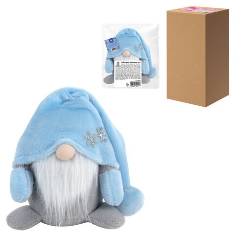 Украшение упаковано в пакет с клейким краем, а затем в прочный гофрокороб. Материал – полиэстер. Длина – 17 см, размер с вытянутой шапочкой – 38 см.