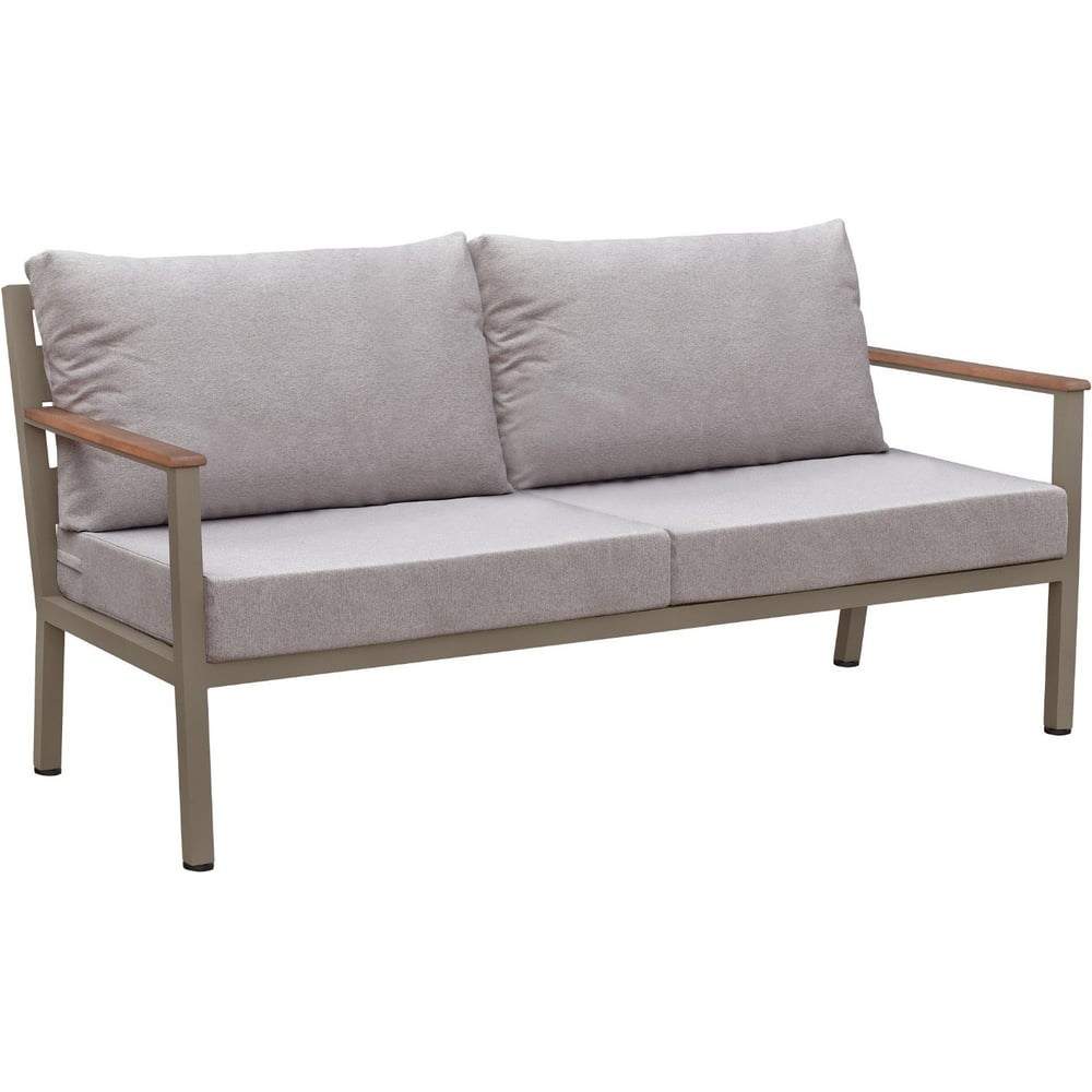 Уличный диван из коллекции мебели Santorini сочетает в себе элегантный дизайн, комфорт и долговечность. Прочный алюминиевый каркас дополняют деревянные подлокотники и четыре удобные подушки со съемными чехлами для комфортной посадки. Садовый диван подходит для использования на улице и в помещении. Диван в комплекте с журнальным столиком и креслом создают уютное пространство для отдыха в саду, на террасе, у бассейна. Рекомендации по уходу и чистке ткани: Ручная стирка при температуре не более 40 °С. Не отбеливать средствами с хлором. Профессиональная химчистка. Глажка при температуре не более 110 °С. Горизонтальная сушка. Сухая чистка пылесосом с насадкой с мягкой̆ щетиной̆. Чистка влажной губкой при температуре 30 °С.