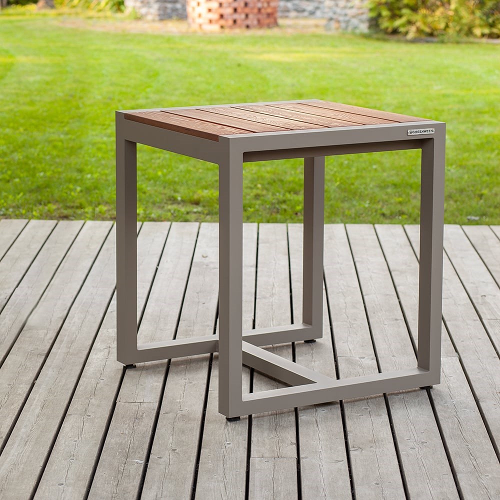 Обеденный стол SANTORINI на 2 персоны отличается элегантным дизайном и долговечностью. Подстолье садового стола изготовлено из алюминиевой профильной трубы с полимерным покрытием оттенка пекан. Столешница выполнена из широких деревянных ламелей из массива лиственницы, покрытых защитным маслом. Регулируемые по высоте ножки с пластиковым основание обеспечивают устойчивость стола на неровной поверхности. Обеденный стол не требует сборки, доставляется в собранном виде в надежной упаковке.