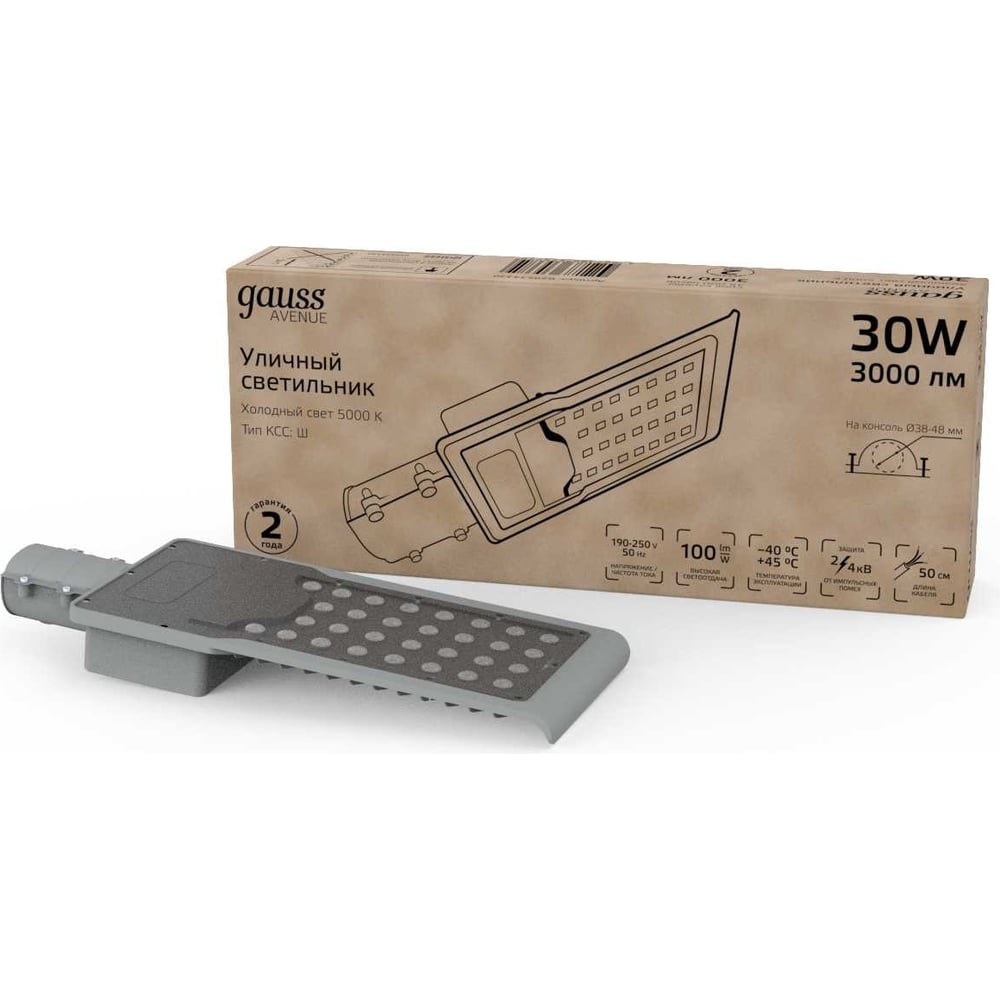 Уличный светодиодный консольный светильник Gauss серии "Avenue" предназначен для освещения автомобильных дорог с малой и средней интенсивностью движения, освещения улиц, дворов, парковых аллей и придомовых территорий рекомендуется использовать светодиодные светильники с распределением КСС типа «Ш» (широкая). Такими характеристиками обладают консольные уличные светильники серии "Avenue". Также светильник защищен от импульсных помех. Это важно, учитывая внешние факторы. Импульсные помехи в сети довольно распространены, они могут возникать во время грозы, при включении/выключении мощных нагрузок. Корпус оснащен анодированным алюминием. Технология анодирования добавляет к светильнику свойства коррозийной стойкости и сопротивление к механическим воздействиям.