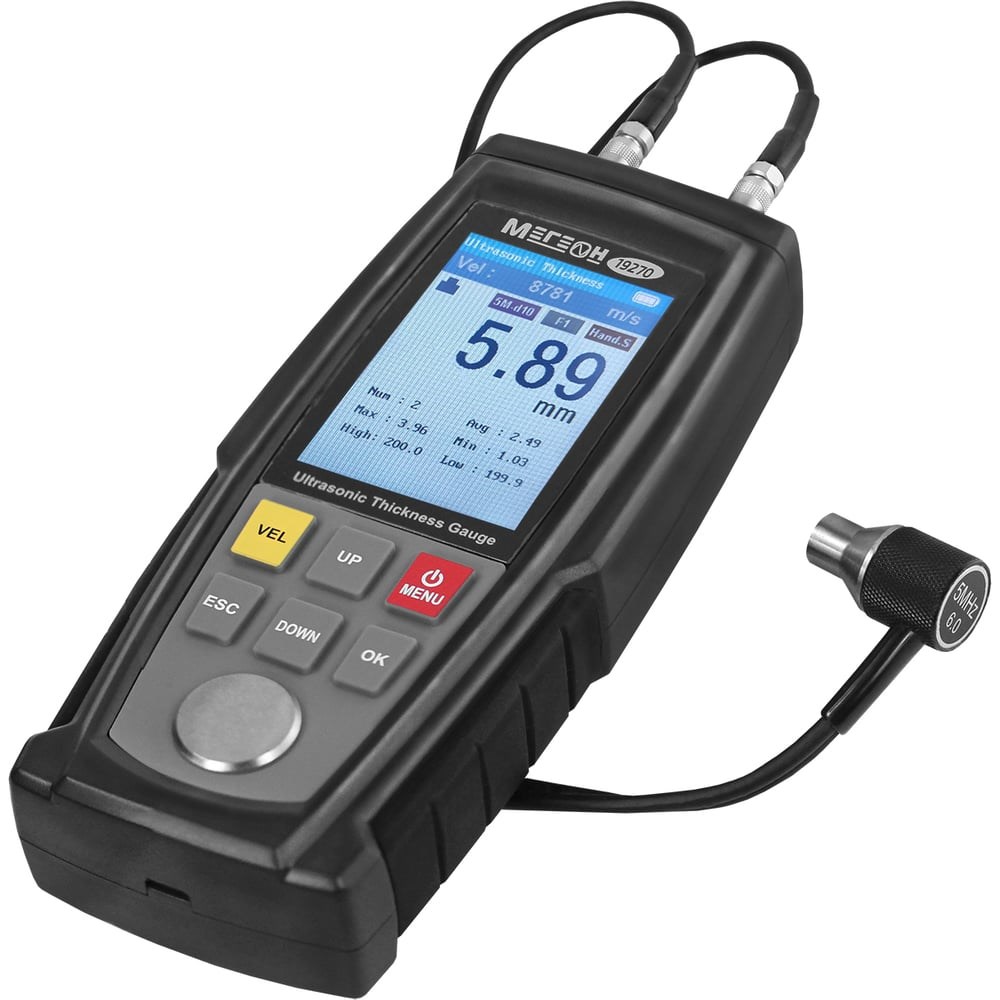 Ультразвуковой толщиномер МЕГЕОН 19270 к0000036638 подходит для различных материалов. Станет незаменимым помощником в промышленном производстве, а также для контроля трубопроводов под давлением. Может быть широко использован в обработке металла, торговле и других отраслях. Наличие двух датчиков увеличивает сферу выполняемых работ и облегчает эксплуатацию. Благодаря настраиваемой скорости звука можно измерять толщину до 300 мм с низкой погрешностью, а применение современных комплектующих прибор обеспечивает быстрое проведения замеров. Прибор имеет обширный набор корректируемых параметров, установок и внутреннюю память общим количеством 500 измерений. Питание осуществляется от трёх перезаряжаемых Ni-Mh аккумуляторов, что в свою очередь даёт возможность снизить траты на приобретение одноразовых неперезаряжаемых батарей. Безопасное хранение и транспортировка изделия и комплекта приспособлений обеспечивается противоударным кейсом.