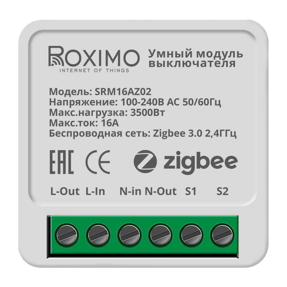 Умный модуль выключателя Roximo Zigbee (реле) с мониторингом энергопотребления SRM16AZ02 - это одно из устройств экосистемы умного дома Roximo. Модуль работает по технологии Zigbee. Для подключения устройства к сети необходим шлюз, например Roximo GWZBT01 (нет в комплекте). Прямое подключение к Zigbee от Яндекс - подключайте устройства Roximo прямо к Станции с поддержкой Zigbee или хабу Яндекс. Устройством можно управлять с помощью специального приложения из любой точки планеты, добавлять умные сценарии и расписания включения/выключения по времени, обратному отсчету, а так же в зависимости от таких триггеров как погода, время заката и восхода солнца, вашего местоположения и т. д. Модуль имеет сверхкомпактный размер и устанавливается в стандартную установочную коробку (подрозетник, не входит в комплект поставки), располагаясь за выключателем или розеткой. Подключение можно выполнить одним из способов: с использованием обычного выключателя, проходных выключателей или без выключателя, т. е. использовать модуль как умное реле. Интеграция с популярными голосовыми помощниками и умными колонками: Google Assistant, Yandex Алиса, Маруся от mail_ru Group и др. - позволяет управлять умным устройством голосом.