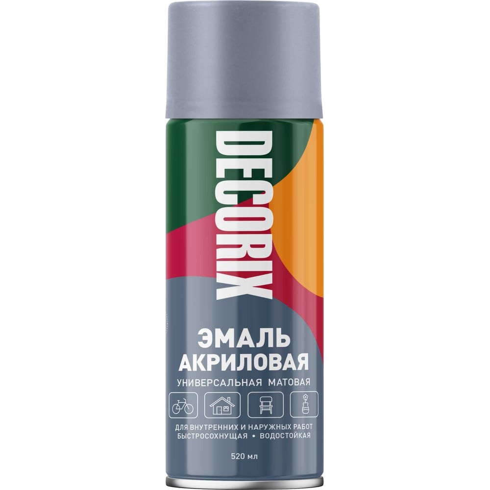 Аэрозольная эмаль Decorix универсальная, акриловая, серый, матовый, 520 мл 0101-45 DX используется в декоративно-оформительских работах, строительстве и ремонте. Предназначена для окрашивания: древесины, пластика, металла, бетона, кирпича, керамики, стекла, картона, минеральных поверхностей. Аэрозольная эмаль удобна для окрашивания небольших поверхностей и труднодоступных мест. Образует гладкое, устойчивое к выцветанию покрытие.