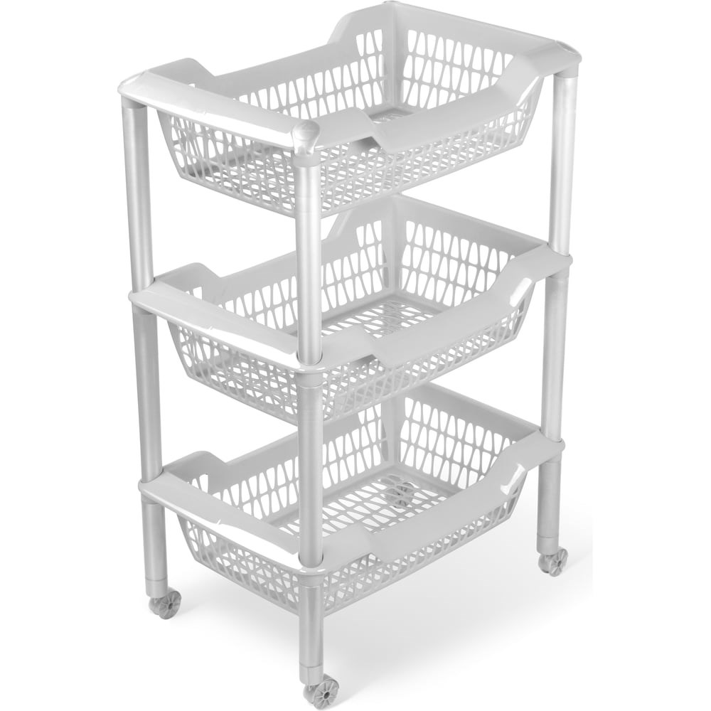 Этажерка с корзинами отлично подойдет для хранения овощей и фруктов, средств гигиены, бытовой химии и других предметов. Это отличное решение для малогабаритной квартиры - поможет быстро разместить необходимые вещи в ванной, прихожей или детской. Для удобного перемещения по комнате этажерка снабжена колесами. Пластик хорошо переносит влажность. Ухаживать за ним также легко - очистить поверхность можно при помощи обычных моющих средств без применения абразивных материалов. Рекомендуемая общая нагрузка на этажерку до 8 кг.