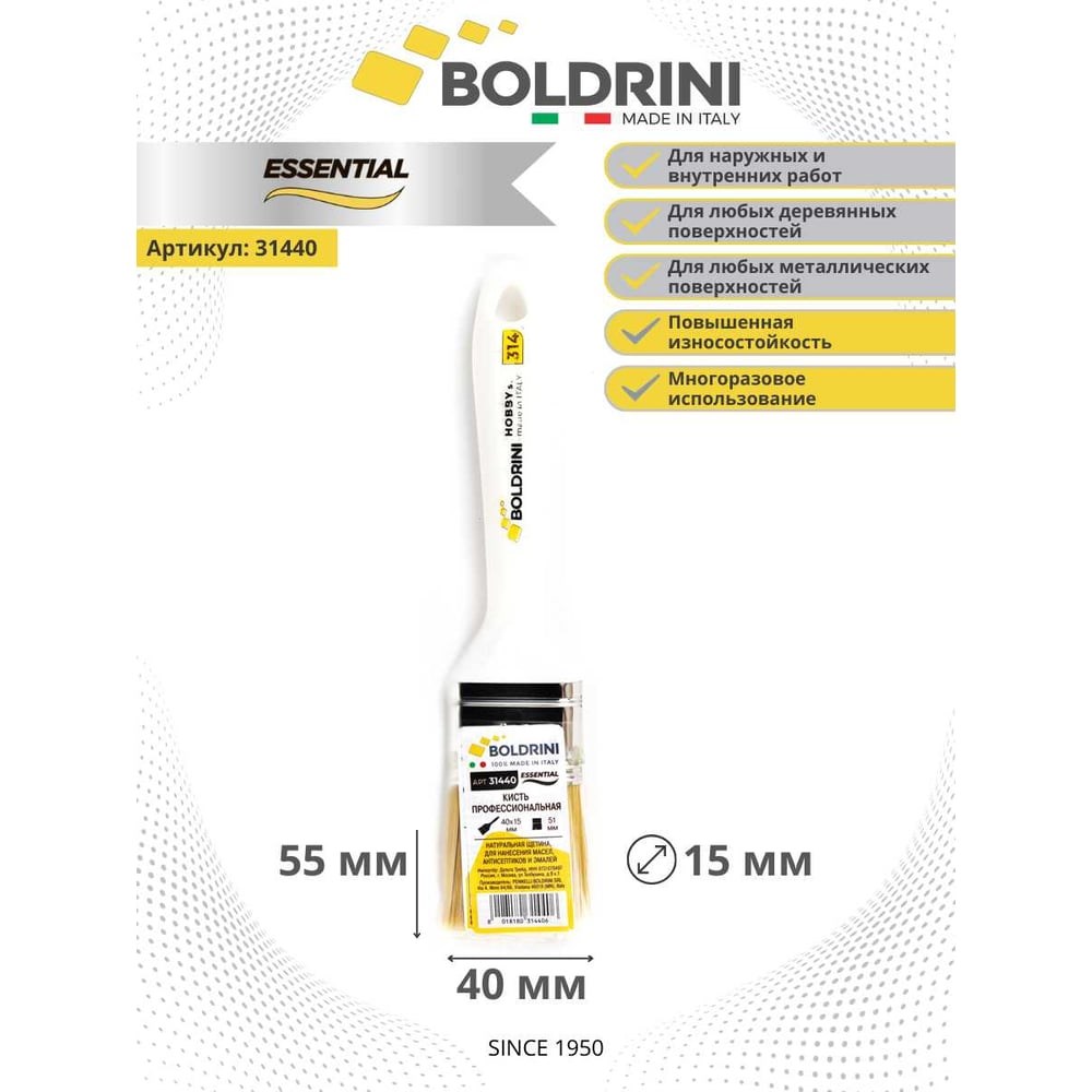 Boldrini Кисть универсальная с натуральной щетиной и пластиковой ручкой, 40 мм, 31440 предназначена для применения с широким спектром красок и лаков на различных поверхностях. Имеет натуральную щетину, которая обеспечивает мягкое и ровное нанесение краски, а также пластиковую ручку, которая обеспечивает удобство и комфорт при работе. Кисть легкая и прочная, что позволяет легко управлять ею при работе. Универсальная кисть Boldrini с натуральной щетиной и пластиковой ручкой - это высококачественный инструмент, который позволяет получить качественный и профессиональный результат при выполнении любых задач по покраске и окрашиванию различных поверхностей.