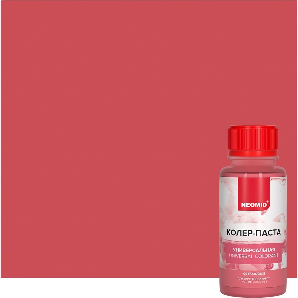 Колер-паста универсальная NEOMID Палитра №1 (09 розовый) 100 мл Н-КолПаста-09-роз предназначена для колеровки акриловых, латексных, водно-дисперсионных (ВД), алкидных (ПФ, ГФ), масляных (МА), нитроцеллюлозных (НЦ) красок и эмалей, лаков, декоративных штукатурок, шпатлевок, известковых и цементных растворов, затирок для швов и др. составов.