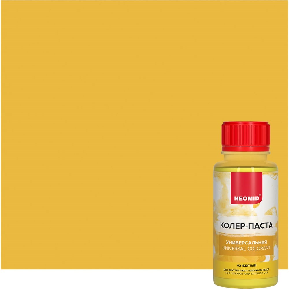 Колер-паста универсальная NEOMID Палитра №1 (02 желтый) 100 мл Н-КолПаста-02-жёл предназначена для колеровки акриловых, латексных, водно-дисперсионных (ВД), алкидных (ПФ, ГФ), масляных (МА), нитроцеллюлозных (НЦ) красок и эмалей, лаков, декоративных штукатурок, шпатлевок, известковых и цементных растворов, затирок для швов и др. составов.