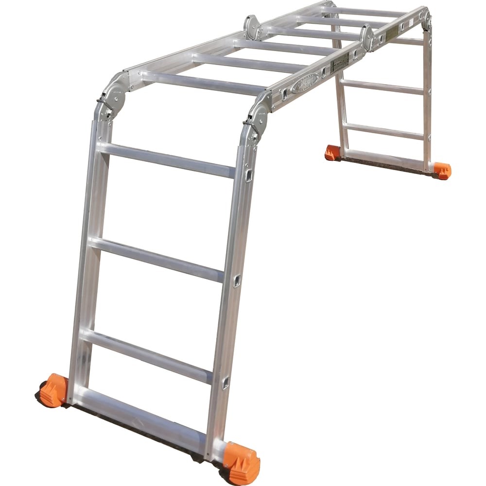 Универсальная лестница Эйфель Простор 4х3 изготовлена из окрашенного алюминиевого профиля, поэтому имеет небольшой вес и высокую прочность. Модель часто используют в работе маляры, штукатуры и отделочники. Подходит для выполнения работ на высоте до 4,4 метров. Поперечные перекладины с противоскользящим основанием обеспечивают устойчивость лестницы на любой поверхности. Предусмотрена возможность изменения конфигурации, что делает лестницу многофункциональной.За счет своей универсальности может использоваться как стремянка, как приставная лестница (в 2 вариантах) и как помост.В варианте “помост” необходимо использовать платформу (приобретается опционально).Шарниры позволяют фиксировать лестницу в нужном исполнении.За счет увеличенной ширины позволяет в положении “помост” ставить возле ног ведро, не создавая препятствий для перемещения.
