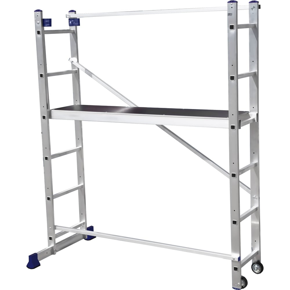 Лестница-помост алюминиевая-представляет собой пространственную сборно-разборную алюминиевую конструкцию башенного типа, состоящую из параллельных лестниц (секций), которые соединены между собой прямыми и диагональными опорами, обеспечивающими жесткость конструкции.Лестница -помост оснащена стабилизатором для обеспечения устойчивости и предотвращения возможность опрокидывания. Так же снабжена колесами для удобства передвижения.Настил (съёмный) выполнен из нескользящей ламинированной влагостойкой фанеры иалюминиевого профиля- является рабочей площадкой. Размер рабочей площадки: 1,30х0,29х0,09 мПрофиль изготовлен из высокопрочного алюминиевого сплава (ГОСТ 22233-2018), что обеспечивает прочность и долговечность при минимальном весе. Ступени имеют рифленую противоскользящую поверхность, что способствует безопасному подъёму и спуску.Лестница-помост может использоваться как: приставная лестница, двухсторонняя стремянка, помост башенного типаПомост - незаменимый помощник во время стройки или ремонта. Подобные конструкции необходимы как для дома, так и для промышленных малярных или штукатурных работ.Завод – изготовитель оставляет за собой право в одностороннем порядке вносить изменения в конструкцию, в целях улучшения технических характеристик.на линейные размеры отклонение может составлять +-5 мм, на вес изделия +-5% (тех. характеристики см.паспорт изделия)