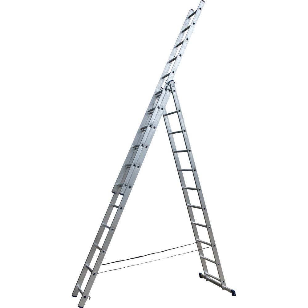 Универсальная трехсекционная лестница STAIRS 11 ступеней AL311 используется при выполнении различных работ на большой высоте.На ступенях предусмотрено рифление, оно предотвращает проскальзывание стопы при подъеме и спуске.Модель изготовлена из алюминия, благодаря чему отличается устойчивостью к коррозийным процессам и прочностью.Капроновые страховочные ремни предотвращают раздвижение лестницы во время работы.Оптимальный шаг ступени 280мм.