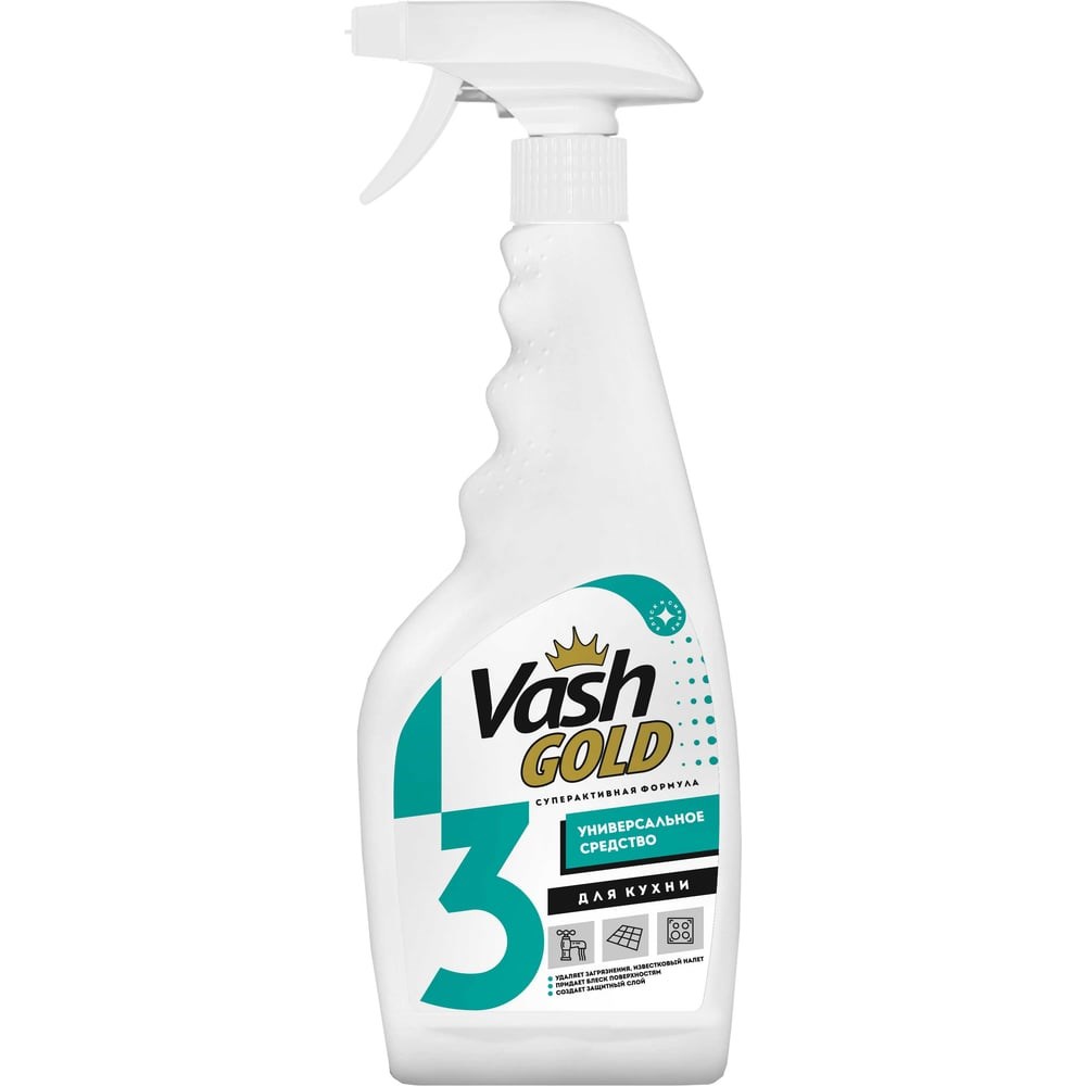 Универсальное средство для кухни VASH GOLD 500 мл., спрей 307352 предназначено для ежедневной уборки. Удаляет легкие бытовые загрязнения, известковый налет, пятна от пищи и др.Подходит для поверхностей из стекла, керамики, металла и пластика: раковины, кафельной плитки, фарфорового и фаянсового оборудования ванных и кухонных комнат, внутренних и внешних поверхностей СВЧ-печей, холодильника, вентиляционного отверстия, фасада кухонного гарнитура, поверхностей из стекла и зеркал.Кроме натурального необработанного дерева и камня.Придает блеск и создает защитный слой. Устраняет неприятные запахи.
