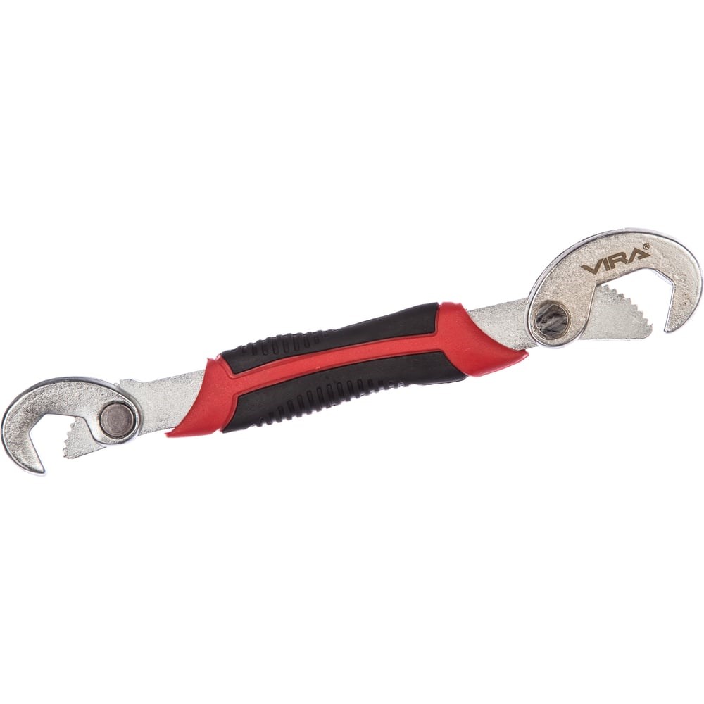 Ключ универсальный с крючком 9-22 мм VIRAКлюч универсальный самозажимной предназначен для работы с любыми поперечными сечениями. Двусторонний ключ с адаптацией под размер от 9 до 22 мм с однонаправленным ходом. Инструмент предназначен для закручивания болтов и гаек с 4, 6, 12 гранями. Подойдет для захвата труб и прутьев с круглым, квадратным и треугольным сечением. С одной стороны находится малый подвижный крюк с рабочим ходом 9-14 мм, с другой - большой подвижный крюк 15-22 мм. Является альтернативой наборам ключей в доме: один инструмент проще хранить, чем целый комплект, легко переносить с собой.Характеристики:Длина (мм): 210Раскрытие зева (мм): 9-14, 15-22Материал рабочей части: инструментальная сталь CSТвердость (HRC): 42-46Материал рукоятки: ПВХ (PVC)Предельный крутящий момент (Н/м): 80, 145Назначение: для закручивания болтов и гаек с 4, 6, 12 гранями, для захвата труб и прутьев с круглым, квадратным и треугольным сечением