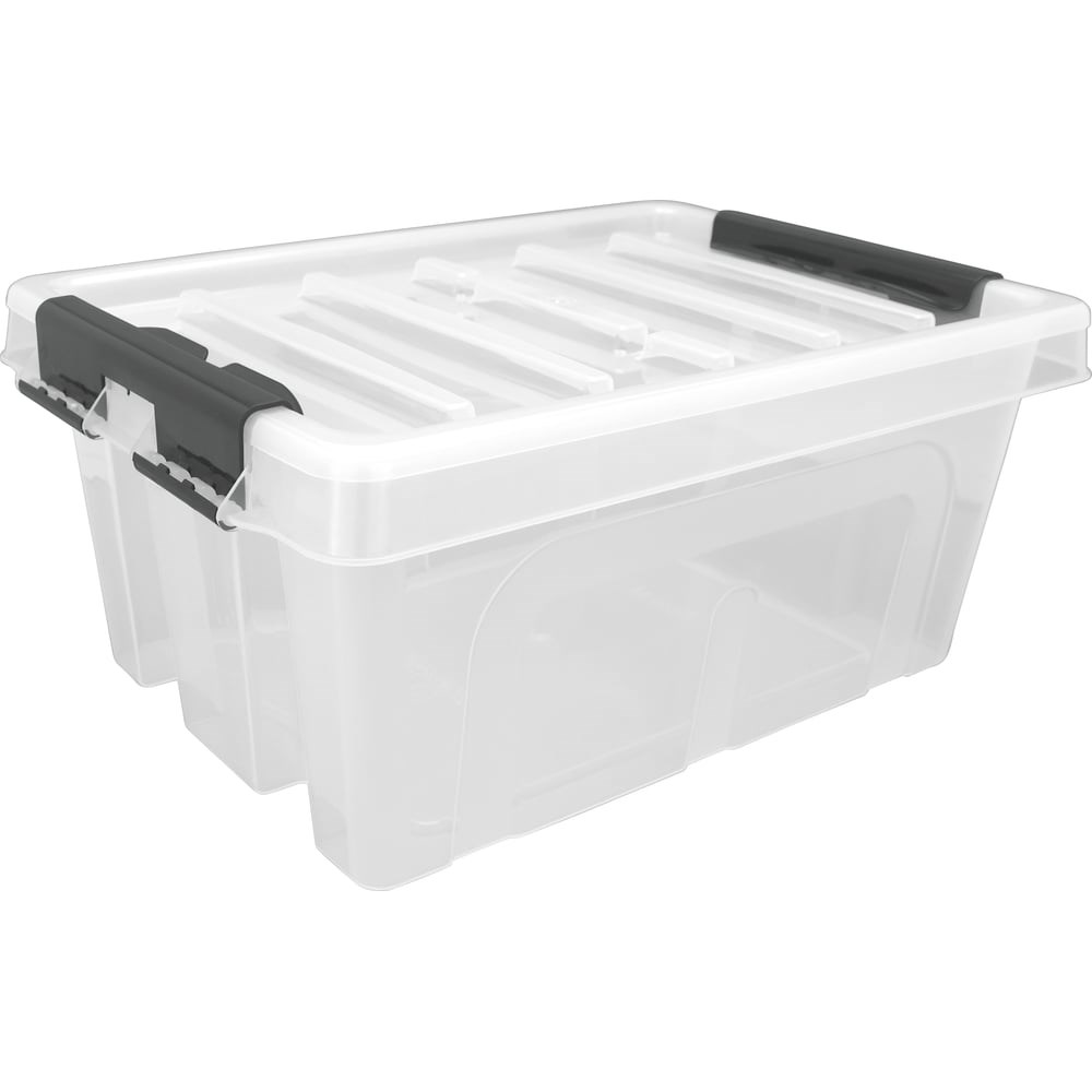 Контейнер выполнен из высококачественного пластика, имеет повышенную прочность за счет дополнительных ребер жесткости, снабжен двумя клипсами по бокам, которые обеспечивают надежность хранения вещей и защиту от пыли, грязи, запахов. Предназначен для хранения одежды, обуви, игрушек, строительных инструментов и различных хозяйственных вещей. Контейнер с клипсами идеальный помощник при переезде.Для компактного хранения контейнеры можно штабелировать друг на друга, собрав при этом систему хранения.