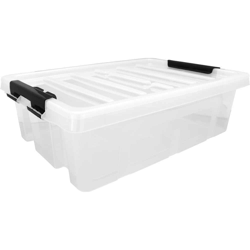 Ящик выполнен из высококачественного пластика, имеет повышенную прочность за счет дополнительных ребер жесткости, снабжен двумя клипсами по бокам, которые обеспечивают надежность хранения вещей и защиту от пыли, грязи, запахов. Предназначен для хранения одежды, обуви, игрушек, строительных инструментов и различных хозяйственных вещей. Ящики с клипсами идеальные помощники при переезде.Для компактного хранения ящики можно штабелировать друг на друга, собрав при этом систему хранения.